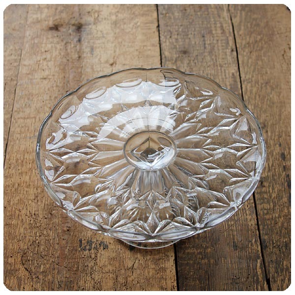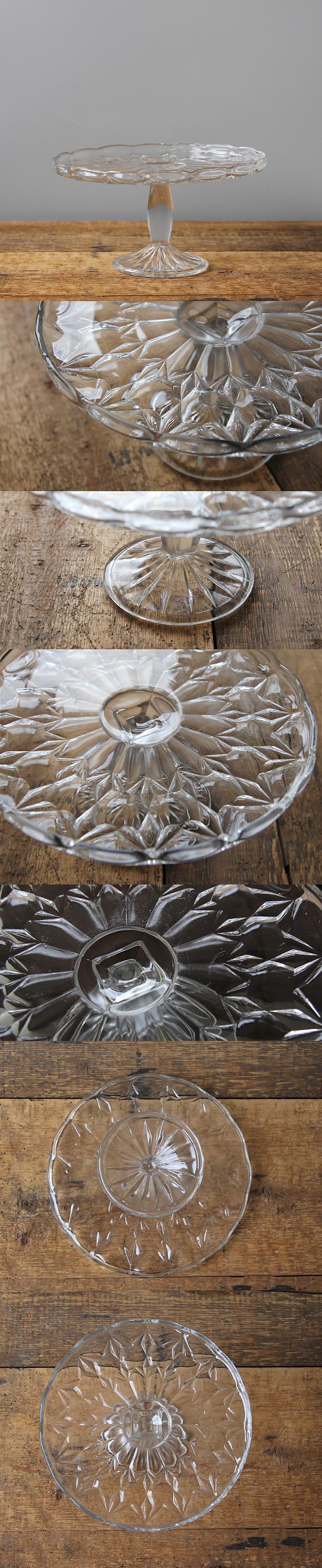 イギリス アンティーク ガラス ケーキスタンド コンポート皿 プレスガラス 食器 雑貨 P-713
