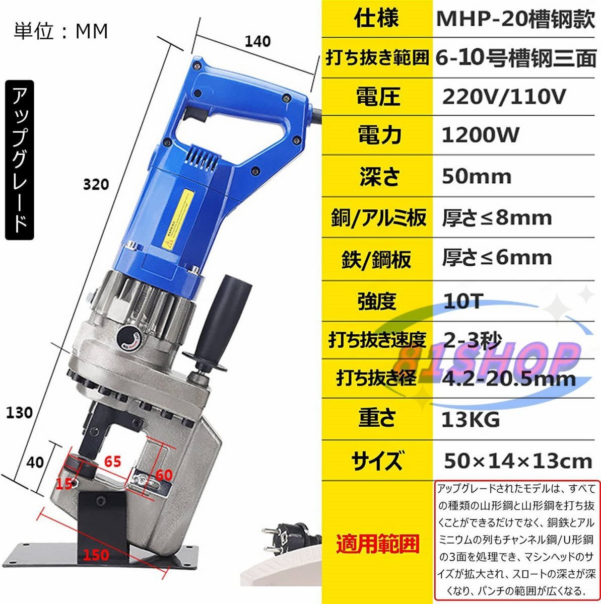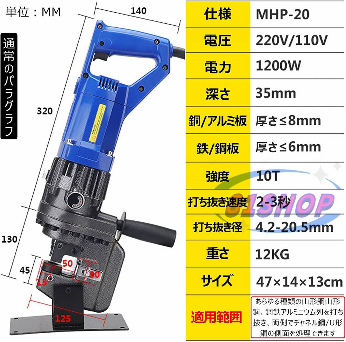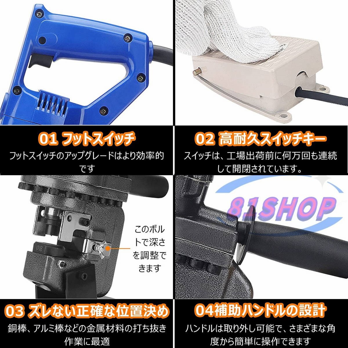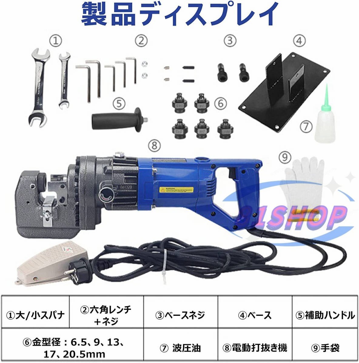 「81SHOP」電動油圧パンチャー 10t 強力 パンチダイ5種付 φ6.5~20.5mm 1200W AC100V 鉄板 鋼板 アルミ板 銅板 山形鋼対応 110v