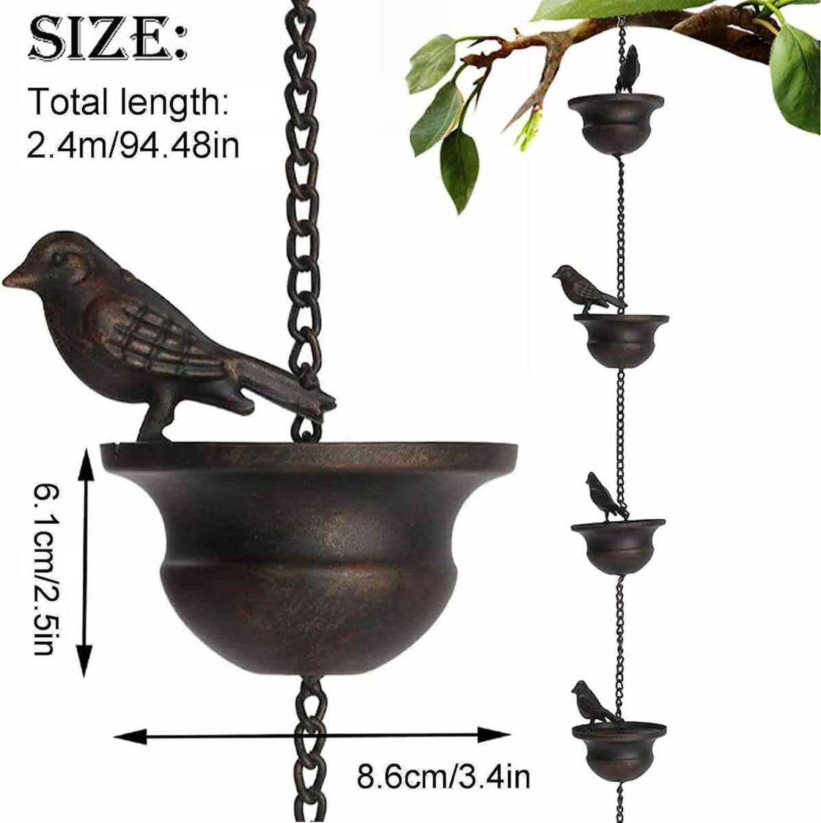 レインチェーン 雨樋 雨どい 部品 側溝用雨鎖 可愛いカップの上に鳥鎖樋 カーポート 吊り下げ金属製風鈴 ウィンドチャイム癒し音 庭飾り