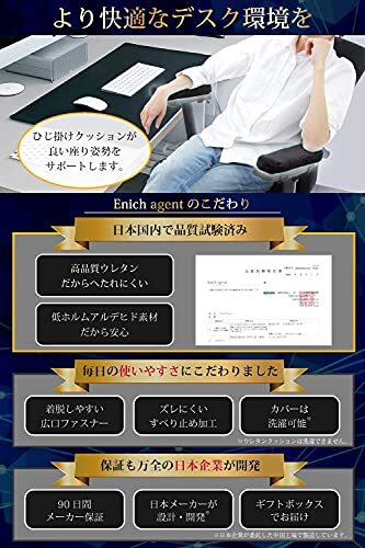 「【ビジネス大賞】Enich agent ひじ置きクッション 両肘セット 低反発 ひじかけ アームレスト 椅子 日本語説明書付 ブラック (ブラッ」▼4570087970115▼(商品説明)・ブラック L:254×105×50mm ・・Color:ブラックSize:L:254×105×50mm・?【「ひじ置きクッションL(ブラック)」のセット内容】(1)ひじ置きクッション(両肘セット)、(2)日本語説明書・?【日本国内の試験機関で品質試験済み】 低反発ウレタンクッションの復元率を測定する試験で驚異の99.5%(80 000回使用しても0.5%しかへたれない)を記録しました。また、カバーは有害物質(ホムアルデヒド)の含有量が基準値以下であることを確認しております。品質・安全にこだわって日本メーカーが設計・開発を手掛けました。・?【高品質な高密度ウレタンを採用】 Enich agentのひじ置きクッションは他メーカーで販売されているものと比べて高品質な高密度ウレタンを採用しています。品質の高さは日本国内で実施した品質試験の結果でも証明されています。見かけは同じでも耐久性、使い心地がまったく違うEnich agentのひじ置きクッションをぜひ体感してみてください。・?【洗濯可能なカバー】 毎日使うものだからいつも清潔にお使いいただけるよう、洗濯可能なカバーを採用しま