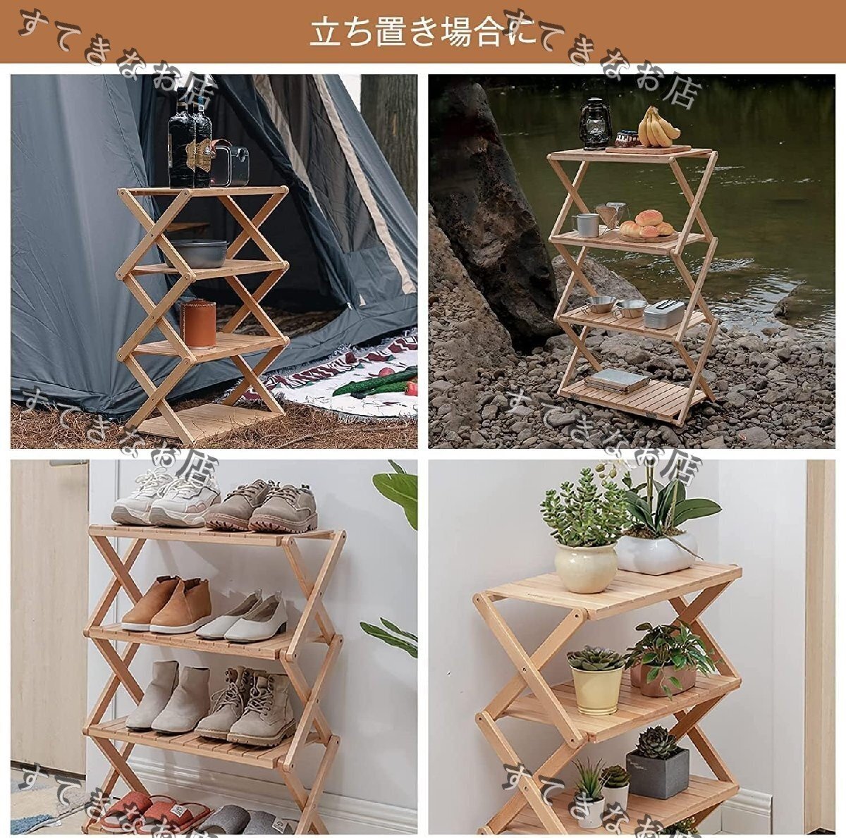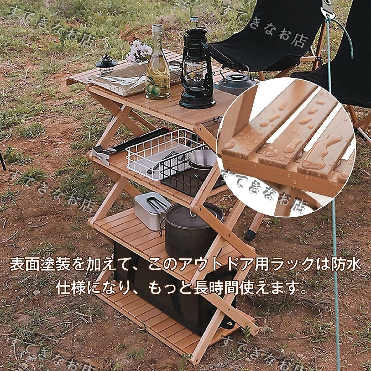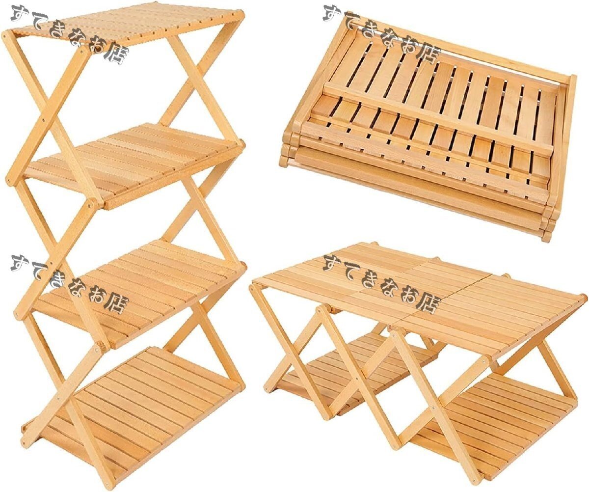 キャンプ 折り畳み式木製ラック アウトドアラック 4段式 折りたたみラック 軽量 キャンプ 棚 両用 コンパクト 天然ブナ 収納棚 キャンプ用