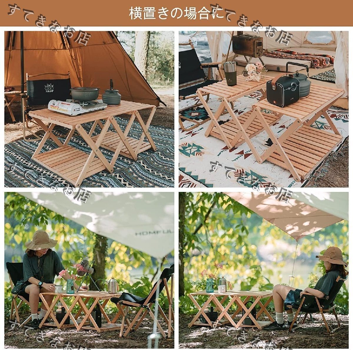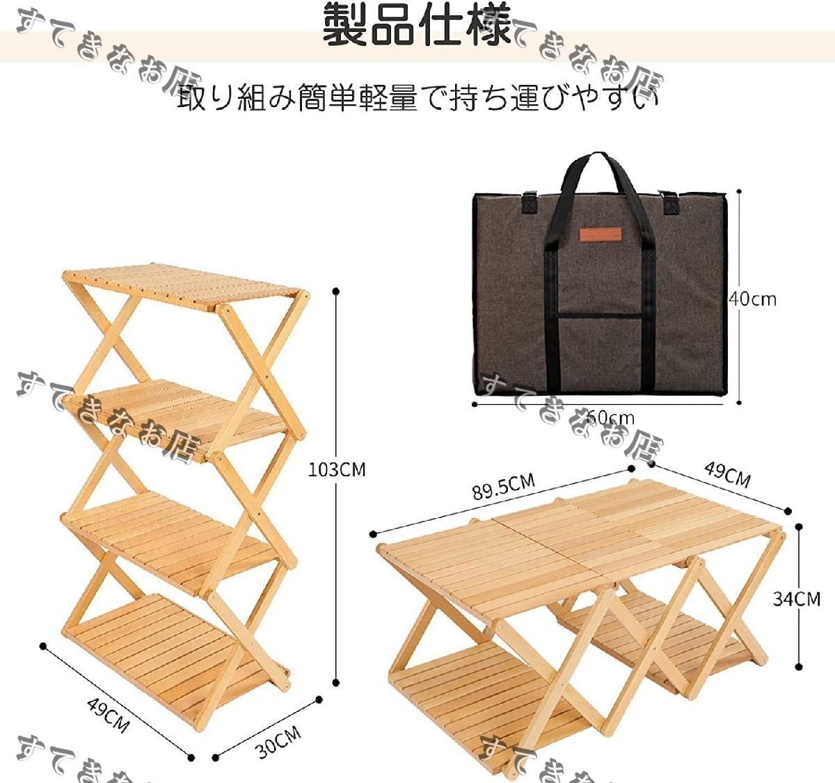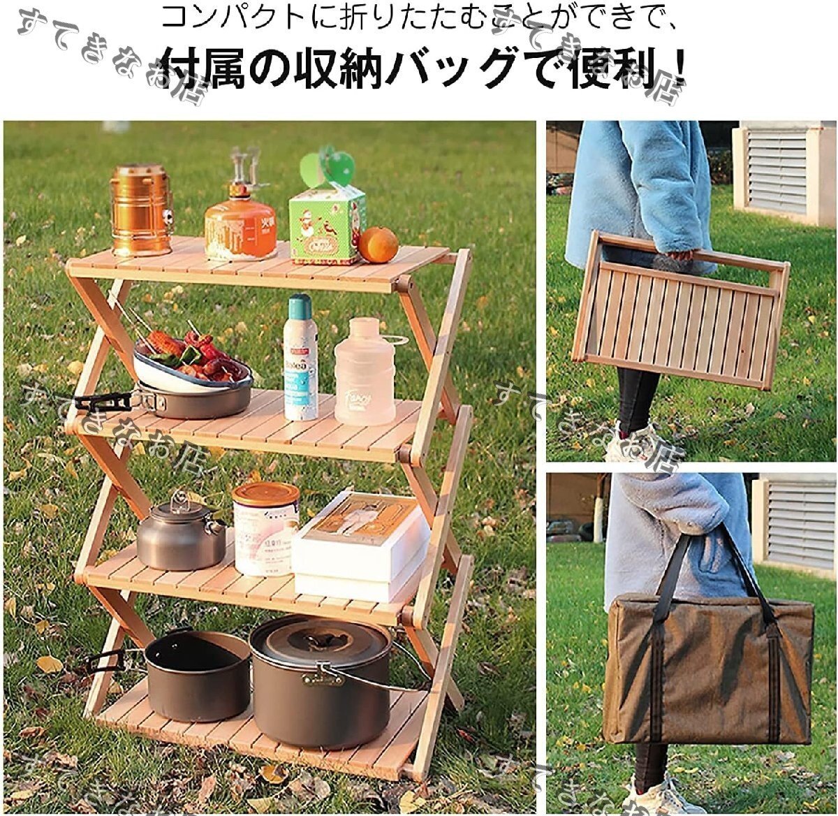 キャンプ 折り畳み式木製ラック アウトドアラック 4段式 折りたたみラック 軽量 キャンプ 棚 両用 コンパクト 天然ブナ 収納棚 キャンプ用