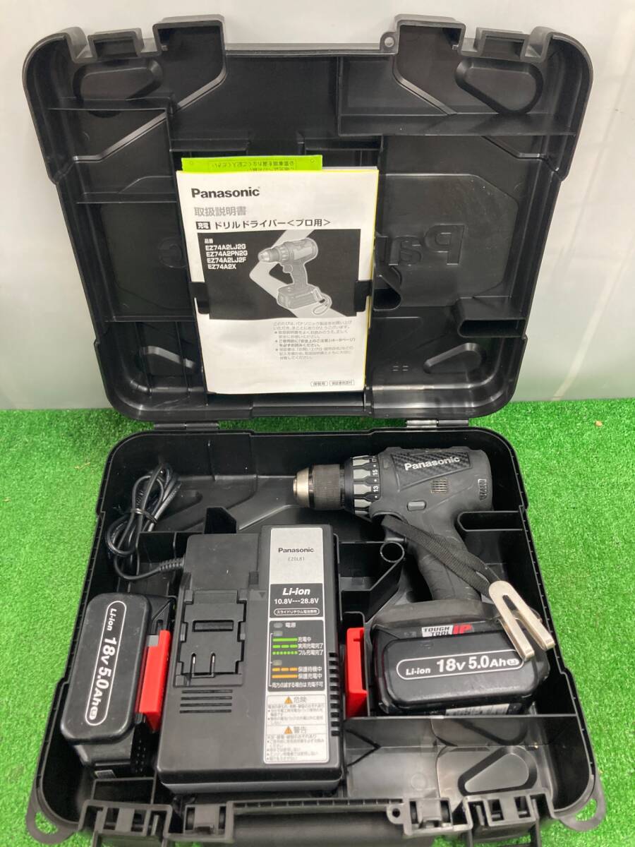 【中古品】★Panasonic(パナソニック) 18v充電ドリルドライバー 黒(5.0Ahバッテリx2/充電器/ケース) EZ74A2LJ2G-B ITREOM10WA60