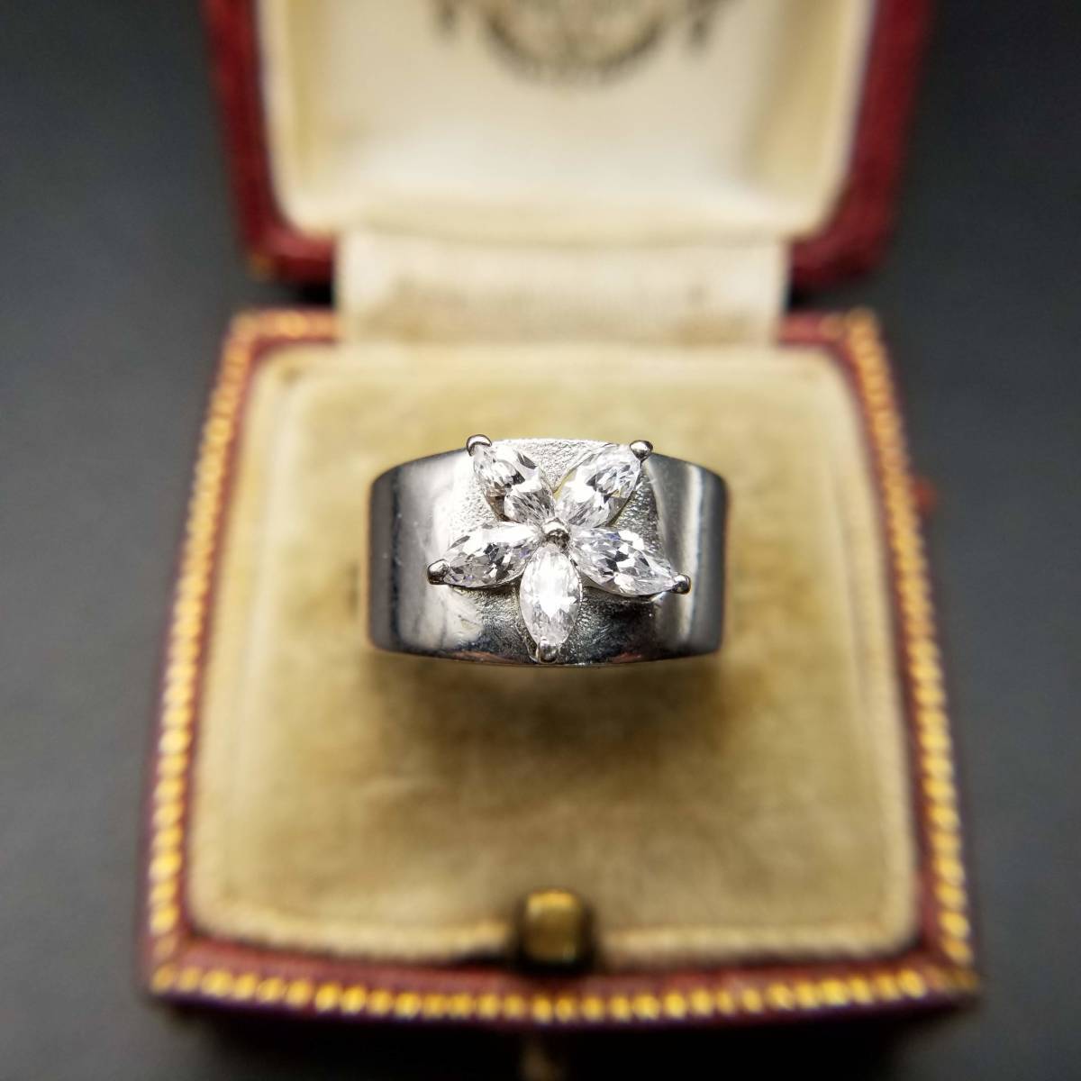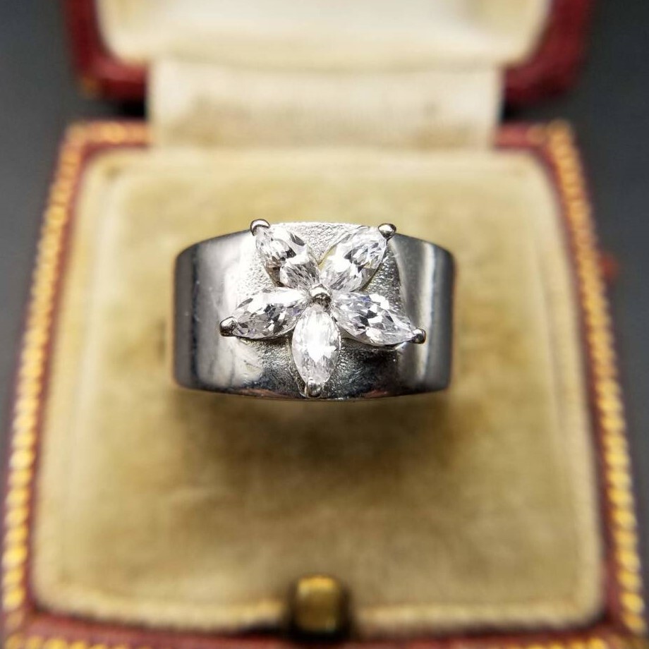 キュービックジルコニア 花 925 シルバー ヴィンテージ フラワー リング 銀 指輪 シンプル 可憐 Y18-V
