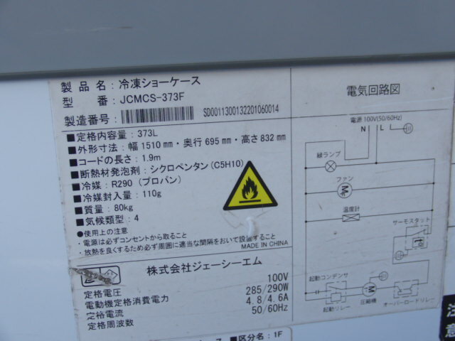 | ◆JCM 冷凍ショーケース◆フラット扉 -20℃以下 373L JCMCS-373F◆2021年製USED | |