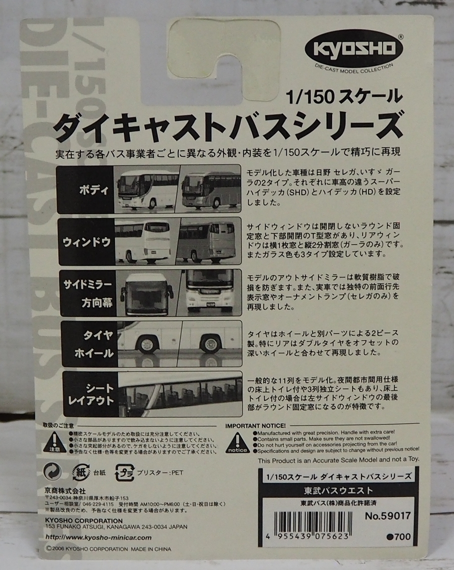 京商ダイキャストバス【017-1東武バスウエストTOBU日野HINOセレガS'ELEGA】台座付1/150ミニカー■KYOSHO【未開封】送料込