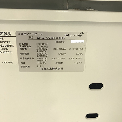メーカー:フクシマガリレイ(福島工業)