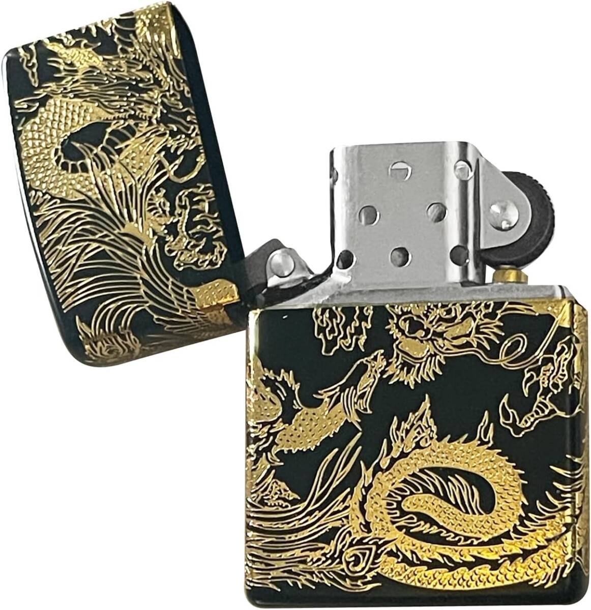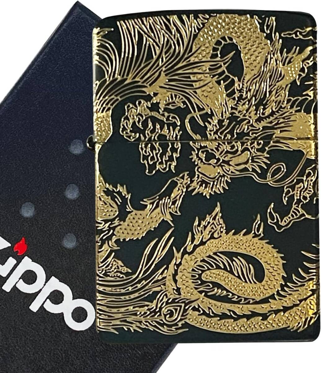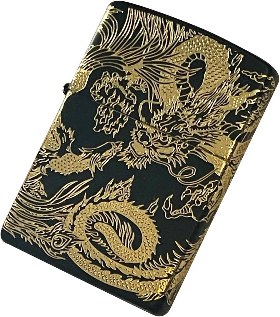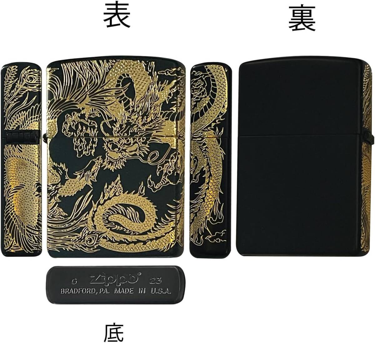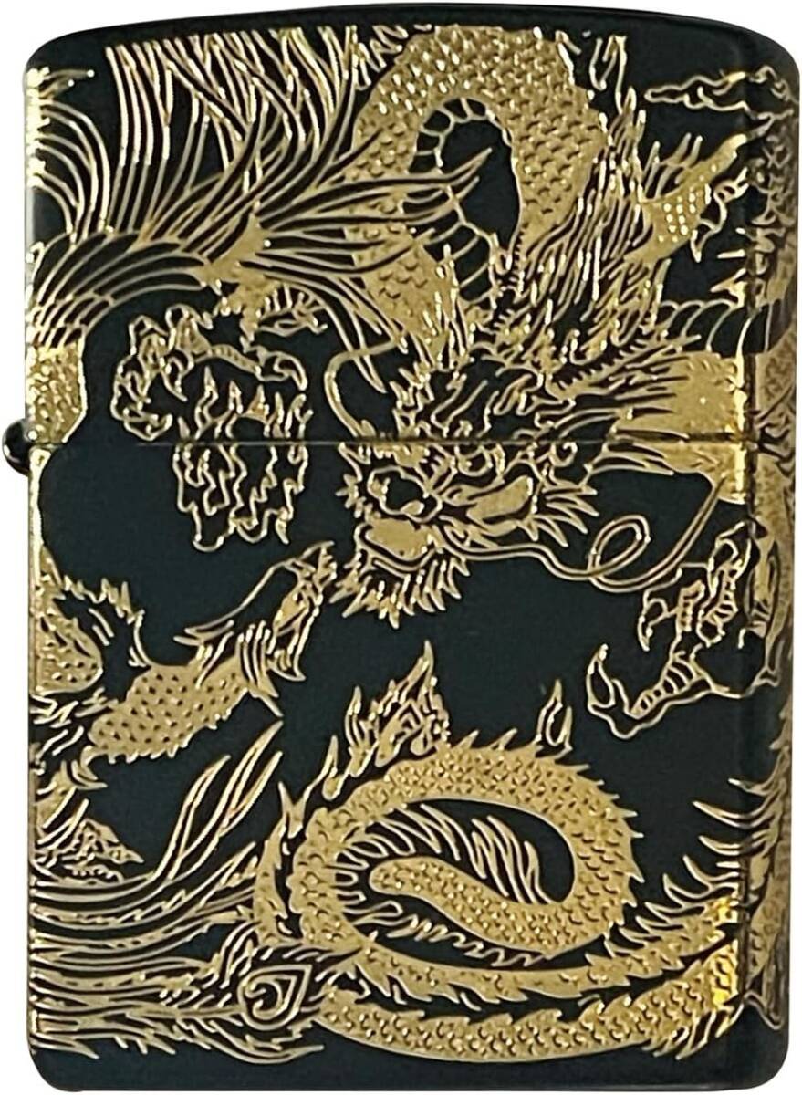 ZIPPO ジッポー ライター 和柄 鳳凰/龍 シンプル ブラック/ゴールド アンティーク 和柄 和風 NIHON NIPPON 日本風