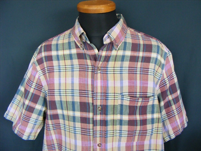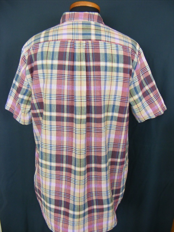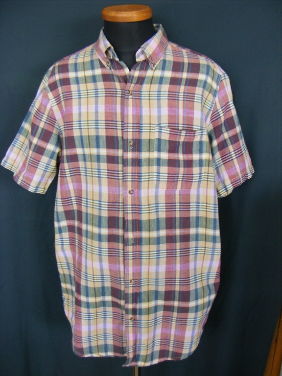 USA古着♯半袖ボタンダウンチックシャツ#アメカジ#ロカビリーバイカー#ダンサーミュージシャン衣装#アウトドア#キャンプ#男女兼用
