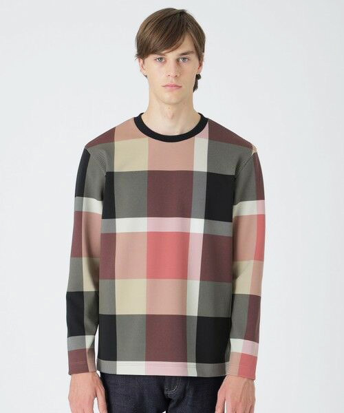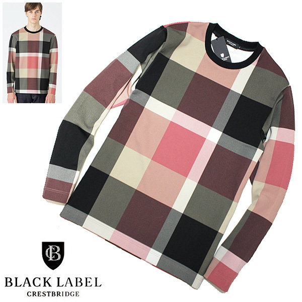 新品 BLACK LABEL CRESTBRIDGE 総柄CBチェック 薄手のスウェットのようなダンボールニットのカットソー