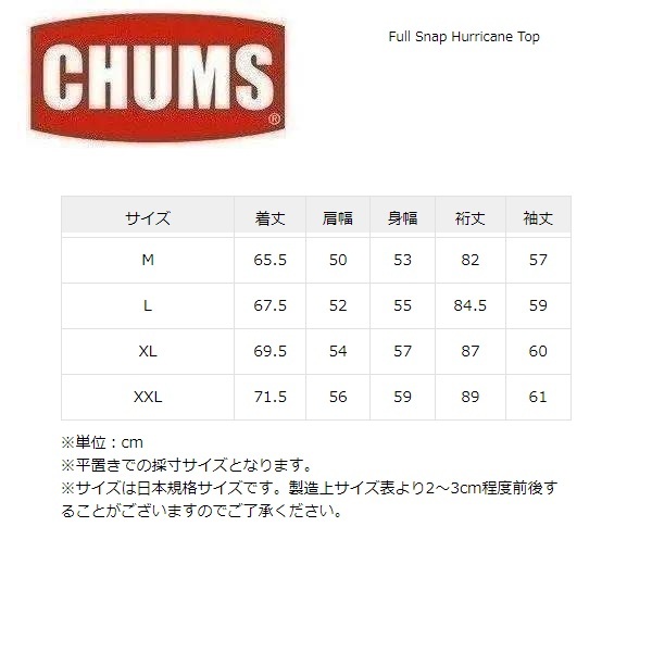 1986年の誕生から今なお高い人気を誇る、CHUMSを代表する名作、ハリケーントップの前開き(フルボタン)デザイン。
