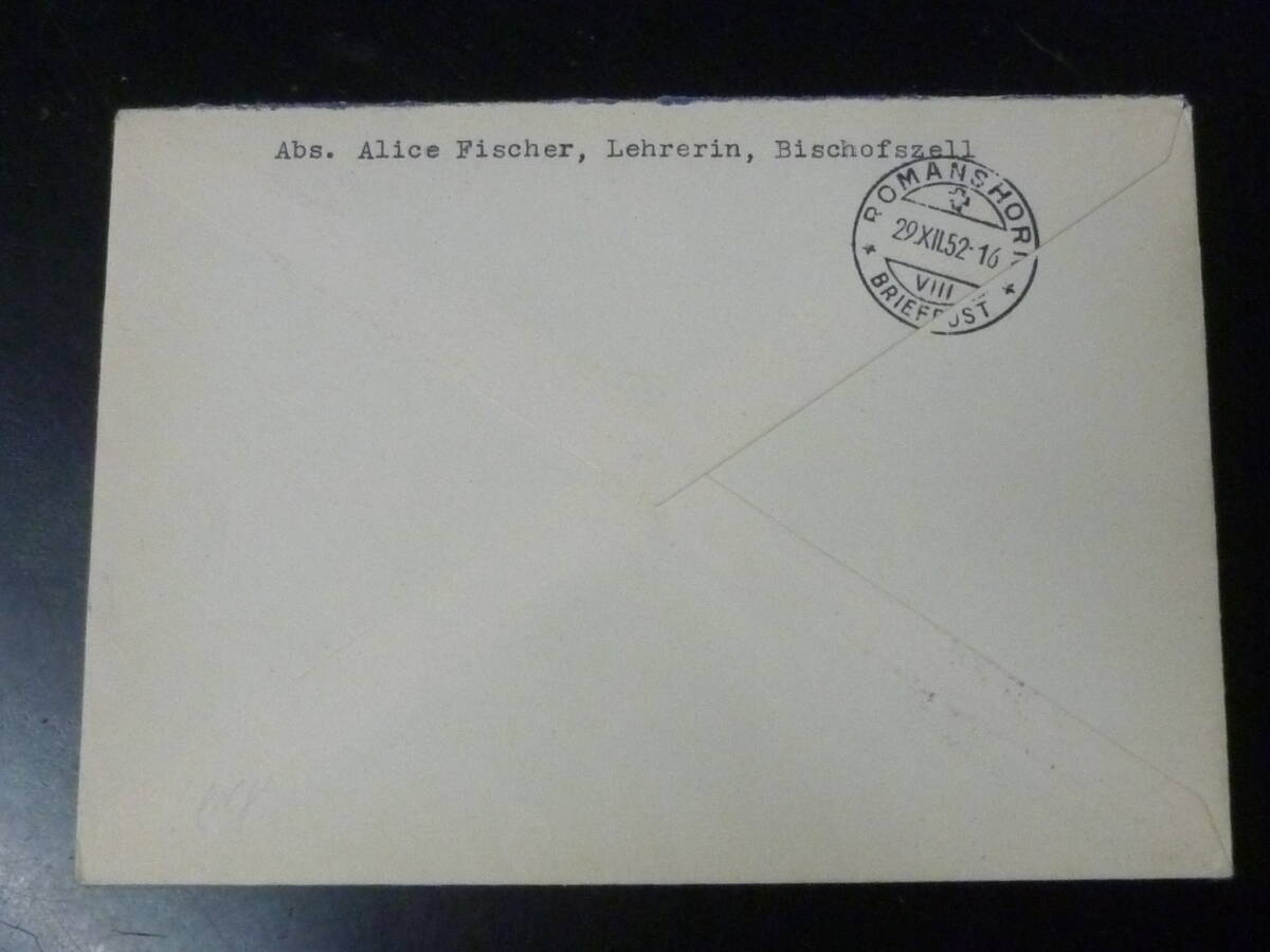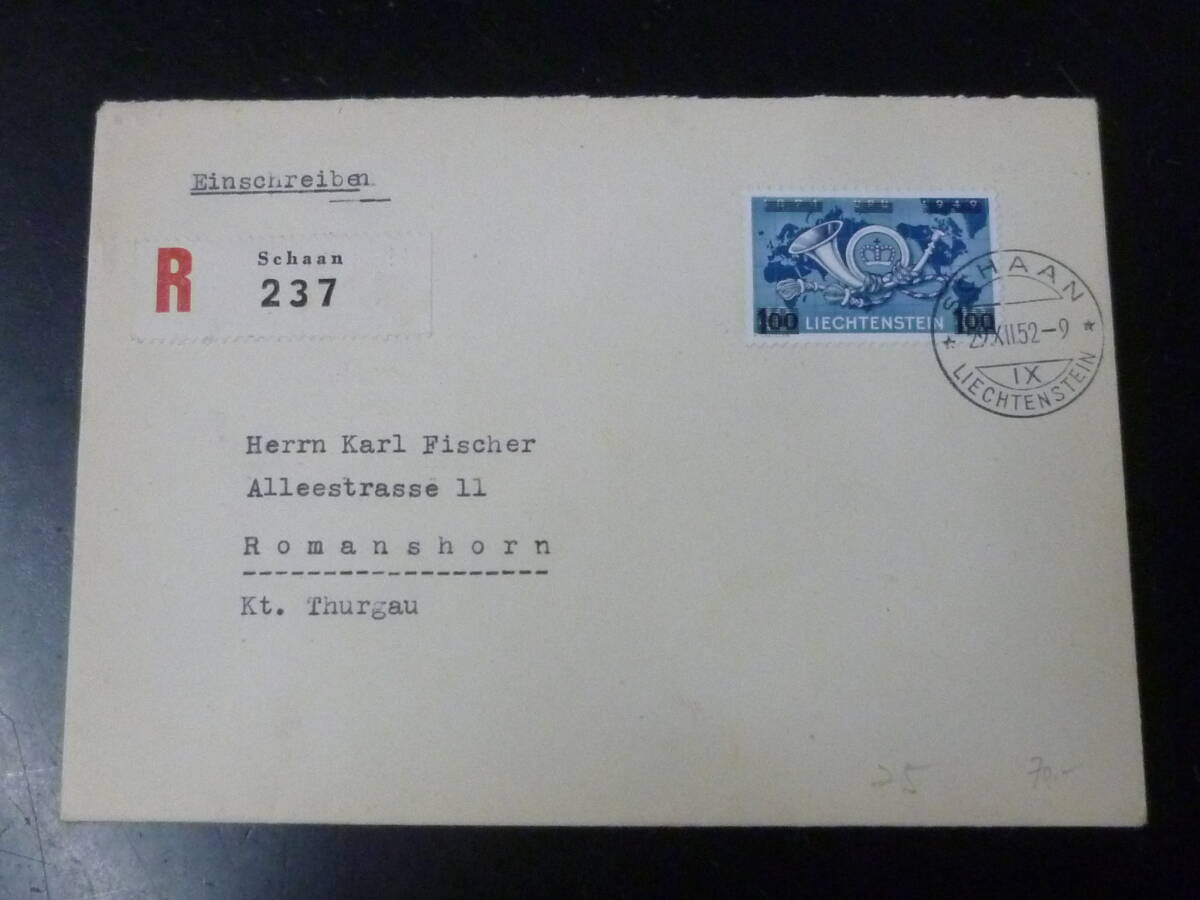 24L P №25 リヒテンシュタイン切手カバー 1952年 SC#246 1fr 1種貼 2印付 Romanshorn宛 書留便 ※説明欄必読
