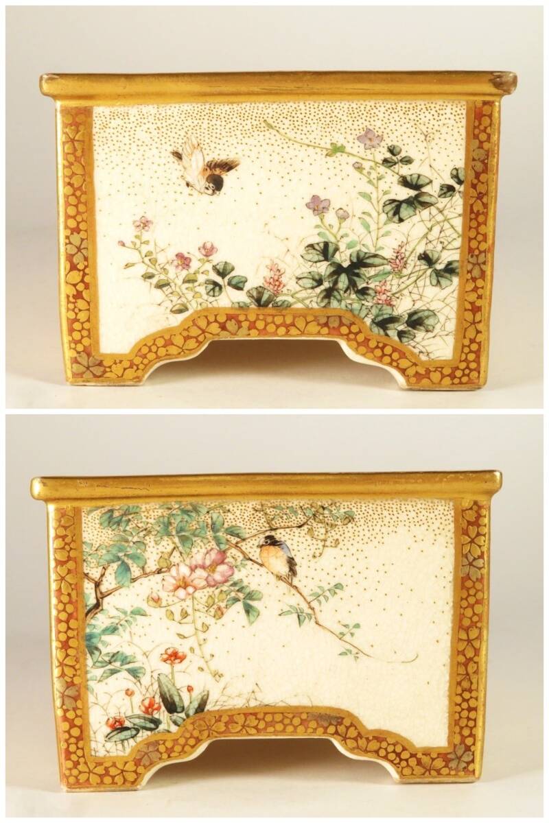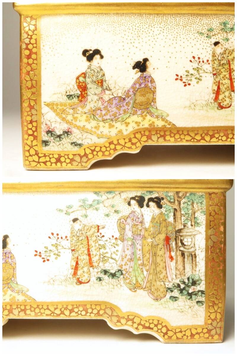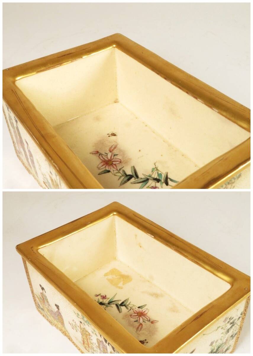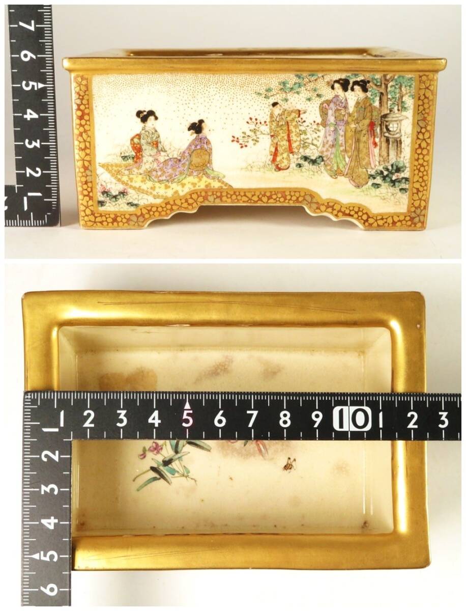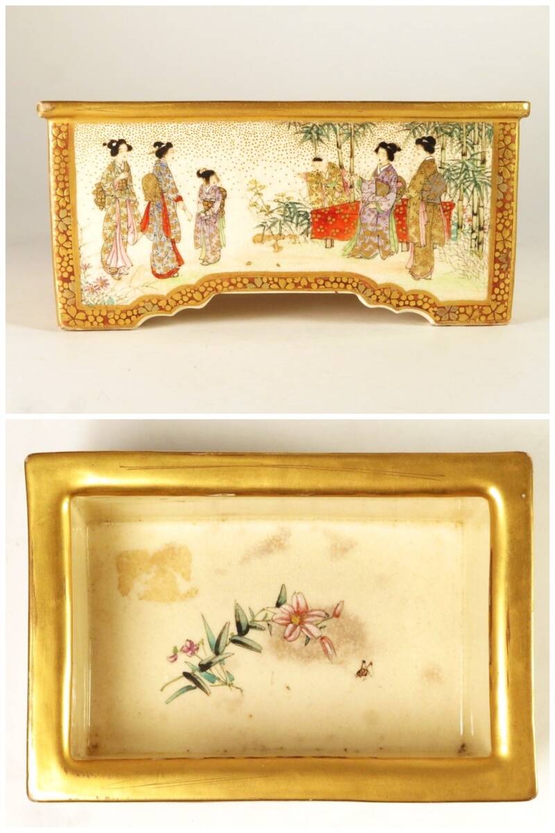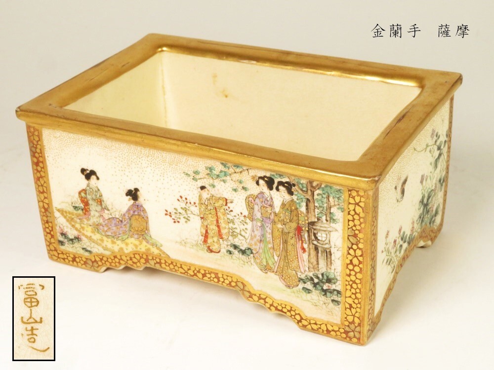 ●明治時代 富山 造 金襴手 薩摩 美人図 長方形 植木鉢 になります。古い物ですが極力状態の良い作品を出品しておりますので是非ご覧ください。 【状態】 ●経年を考慮し状態はよいと思います。 【サイズ(約)】 ●高さ6㎝ 幅12.6×8.7㎝ (素人寸法ですので、若干の誤差はお許し下さい) 【領収書に関しまして】 領収書発行は致しておりません。 Yahoo!かんたん決済手続き完了時の確認画面をプリントアウトして領収書としてお使い下さい。 ※領収証として税務署に認められております。 ご了承のうえでのご参加をお願いいたします。 |