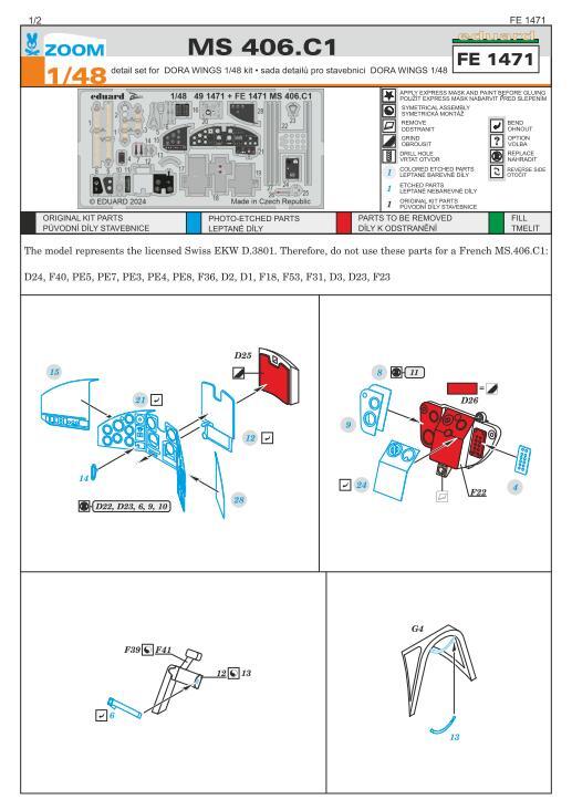 エデュアルド ズーム1/48 FE1471 Morane-Saulnier MS.406C1 for Dora Wings kits