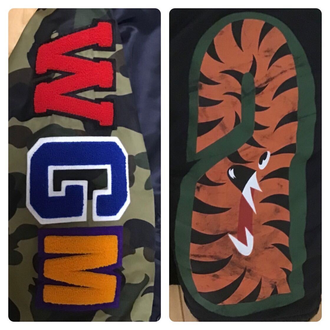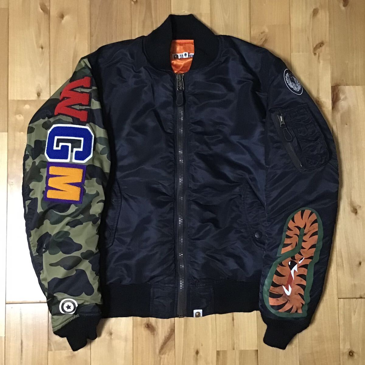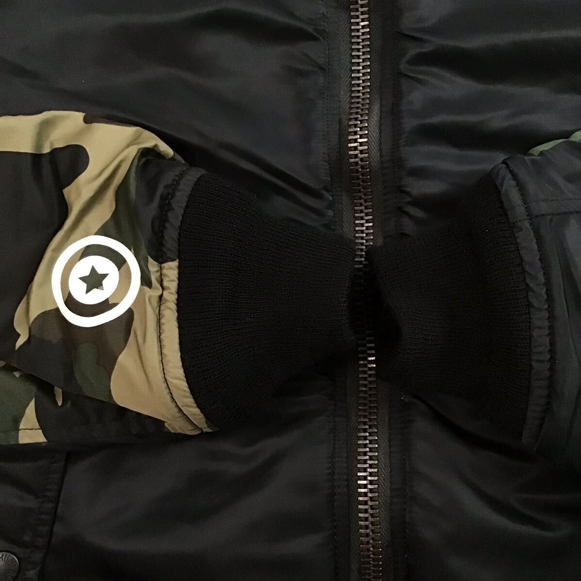 a bathing ape SHARK MA-1 フライトジャケット ブラック × 1st camo green Mサイズ です★