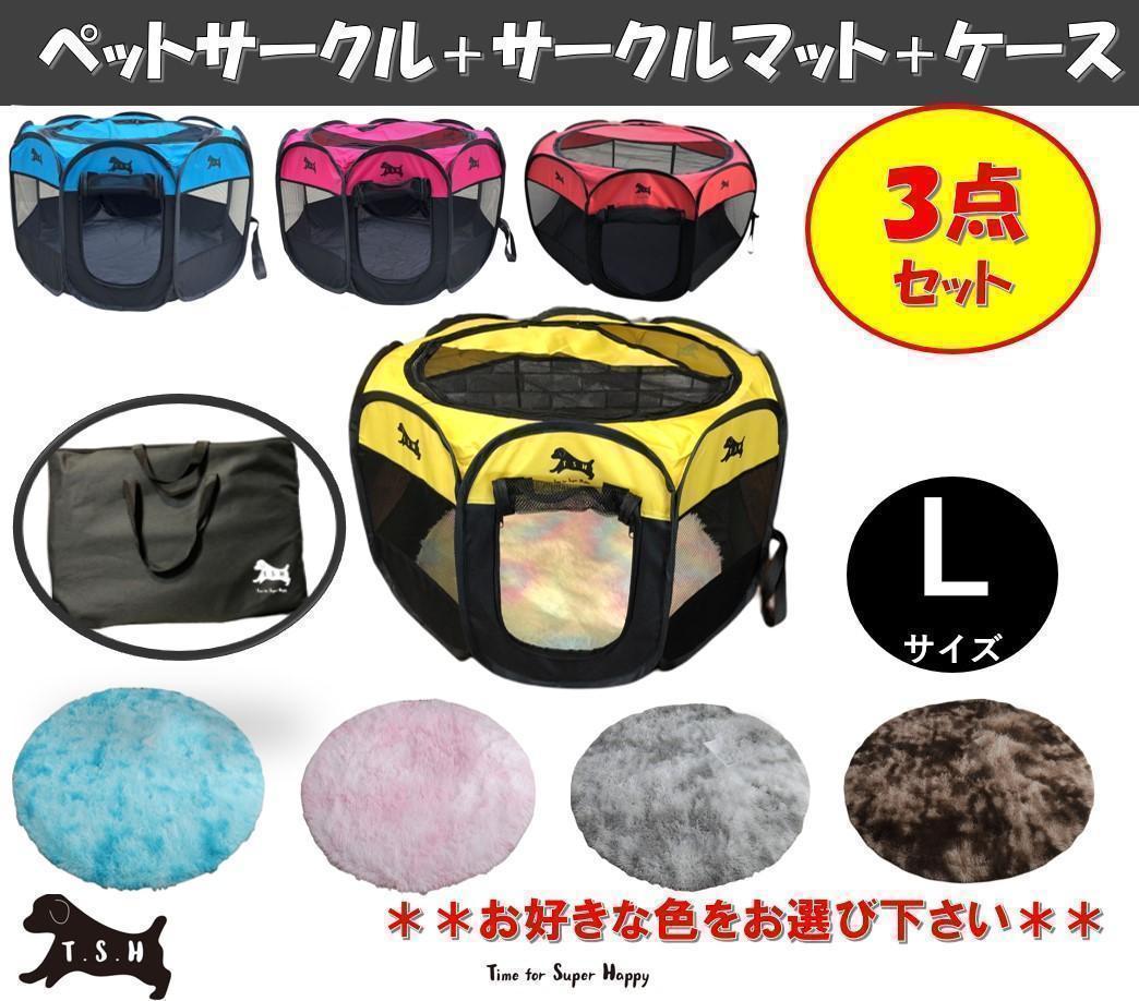 3点 ペットサークル・マット・サークルケース 【L】 折りたたみ 114x58