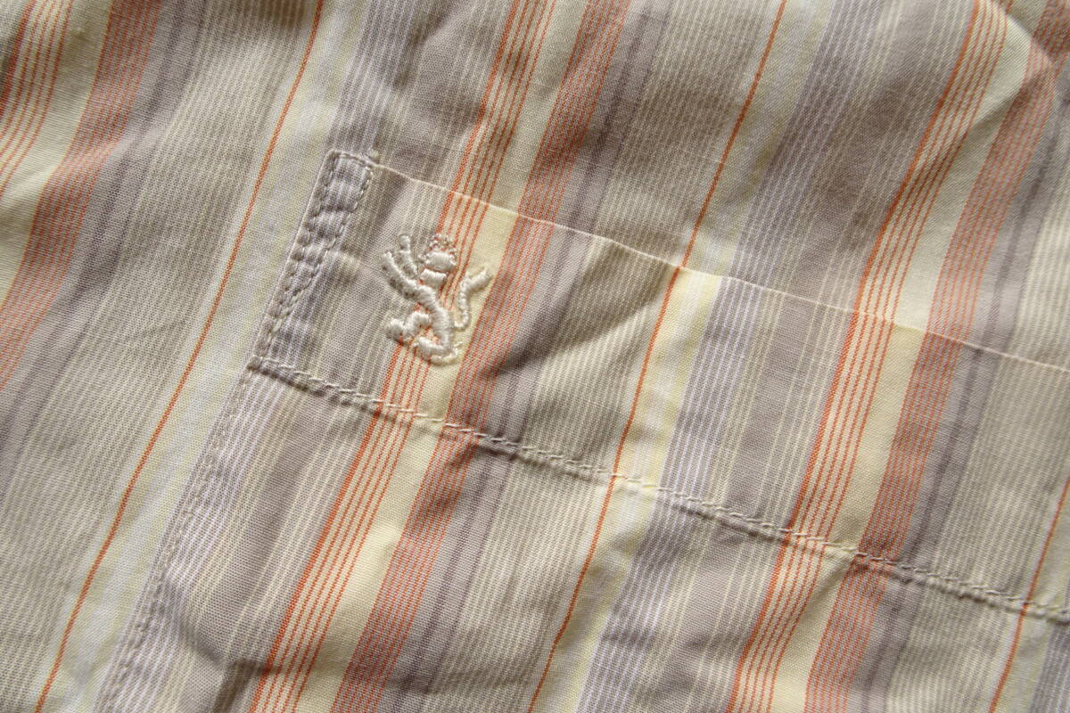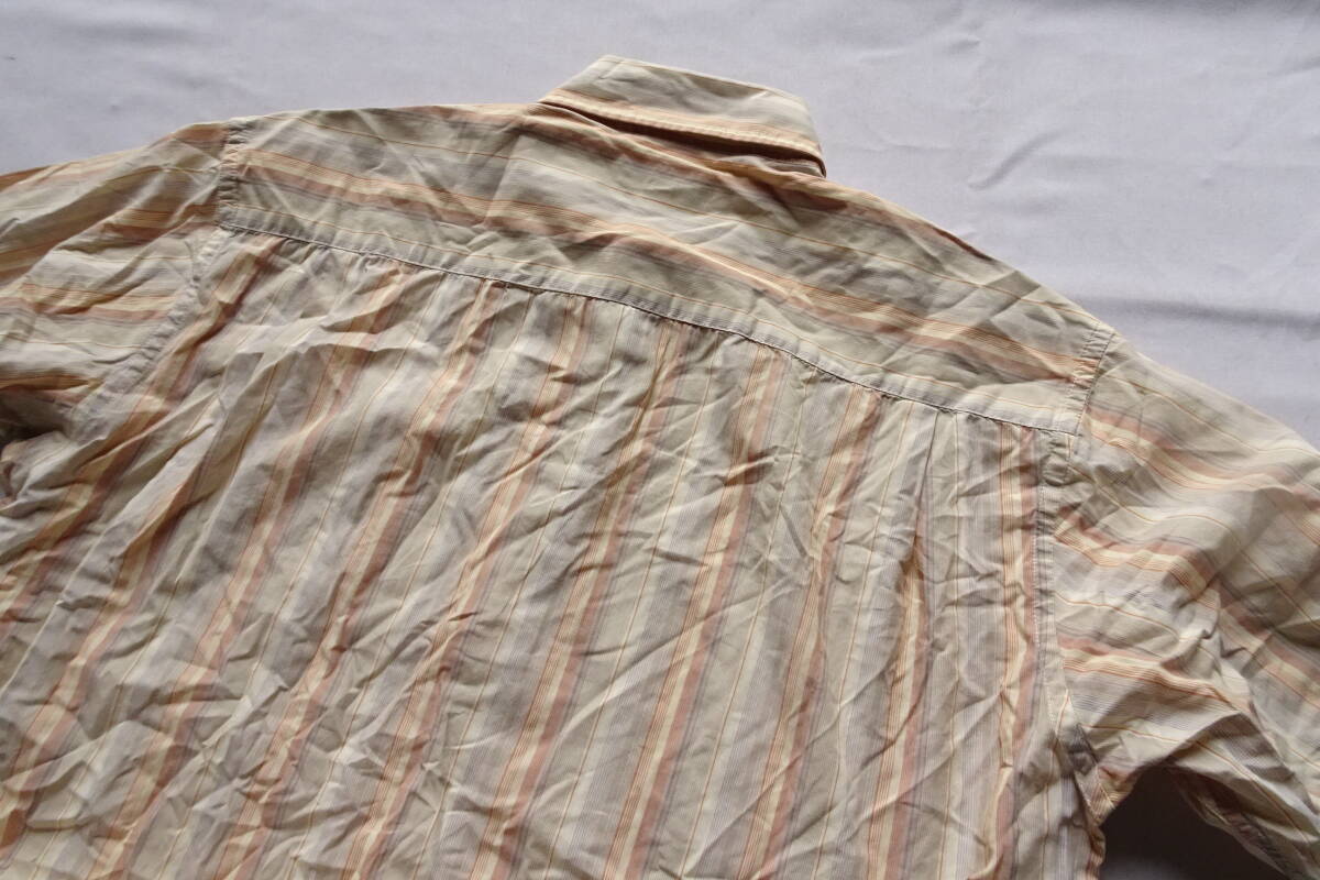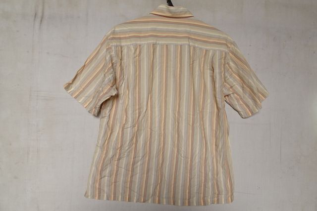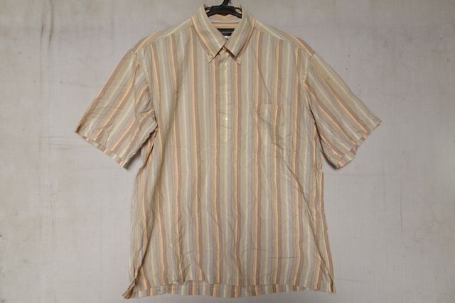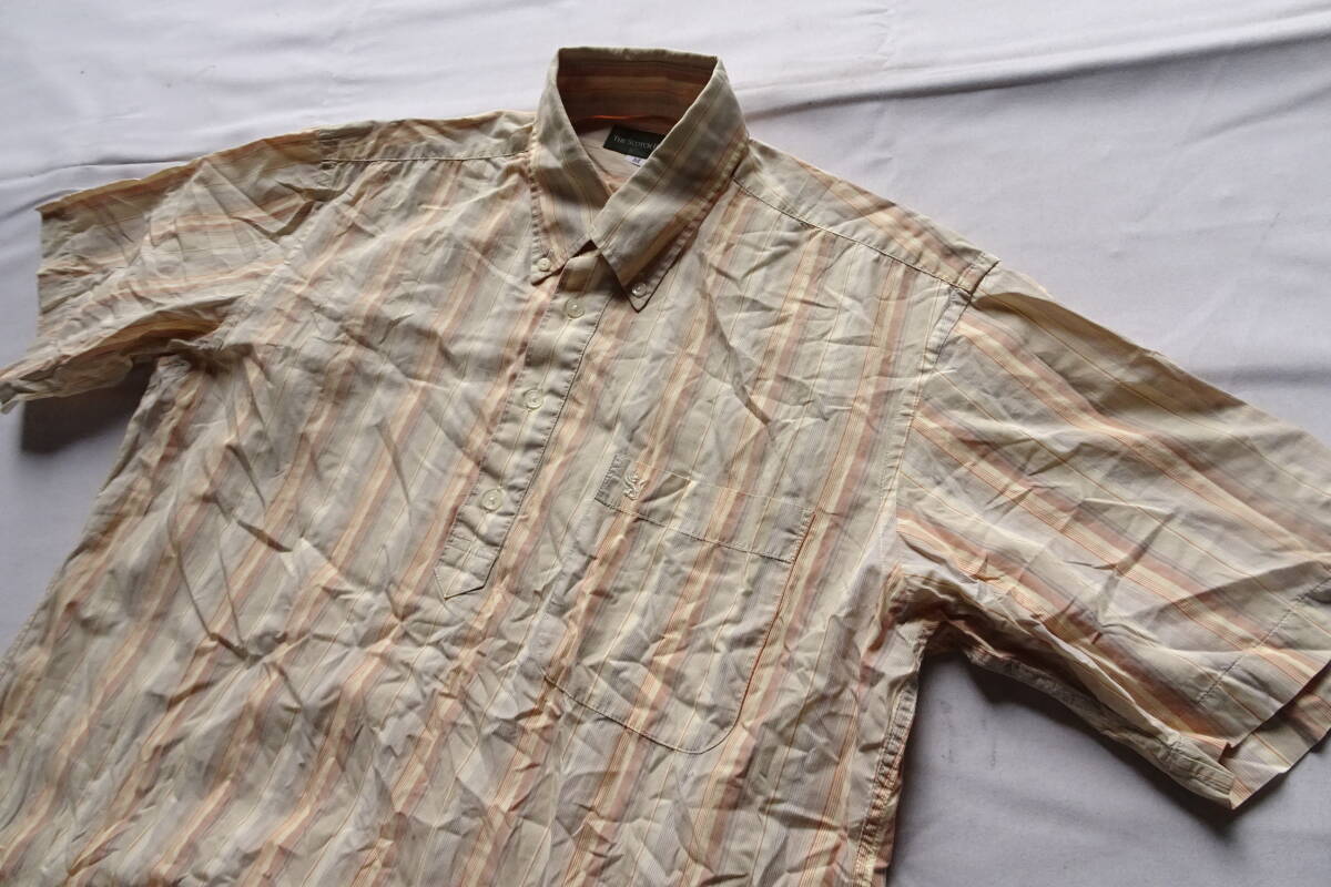 THE SCOTCH HOUSE/ザスコッチハウス/半袖プルオーバー/シャツ/ストライプ柄/ボタンダウン/裾サイドスリット/ペールオレンジ/Mサイズ(9/3R)