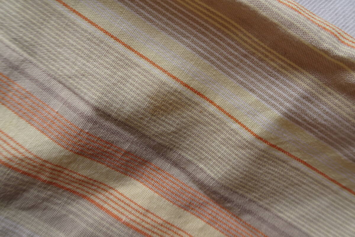 グレー、オレンジ、ペールオレンジ、ベージュ系のストライプ柄です。