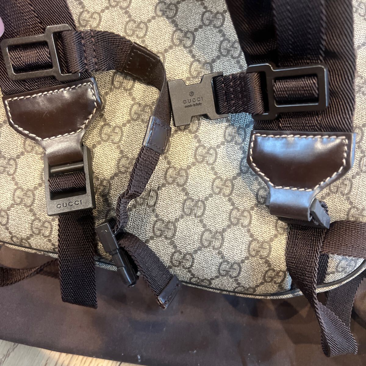 GUCCIのバックパックになります。購入しましたが使用する機会がないので出品しました。使用回数も少なくで中々出てこないアイテムだと思いますのでこの機会にどうでしょうか?バック容量を十分にあります。