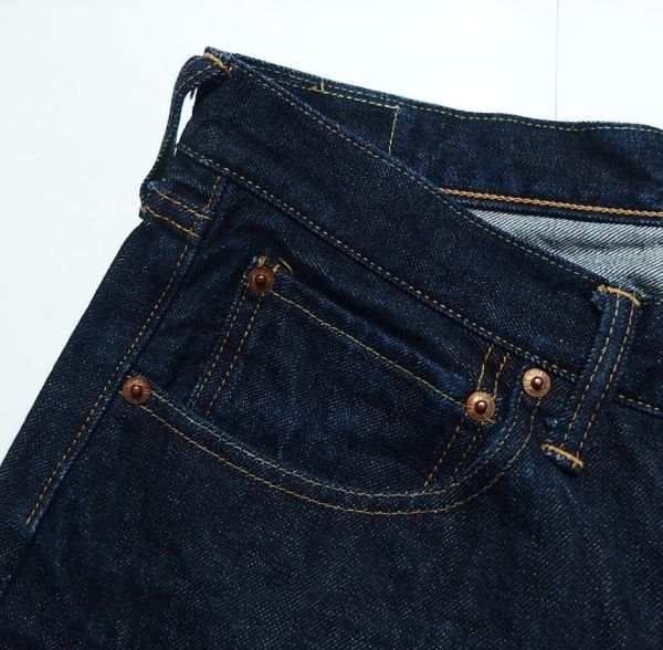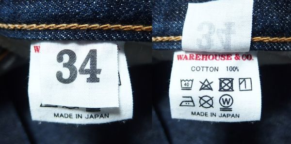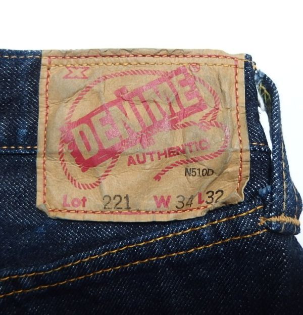 <商品名> DENIME ドゥニーム / WAREHOUSE ウエアハウス Lot 221 (BIG E MODEL) デニム パンツ W34 <サイズ> W34 <詳しい寸法> ウエスト85股上30.5股下68裾幅22(単位:㎝) ぐらいです。 <商品状態> 多少の使用感、素材特有の着用に伴う細かなスレやアタリ、色あせがございますが色は濃く良好です。 <商品説明> Lot 221 (BIG E MODEL)