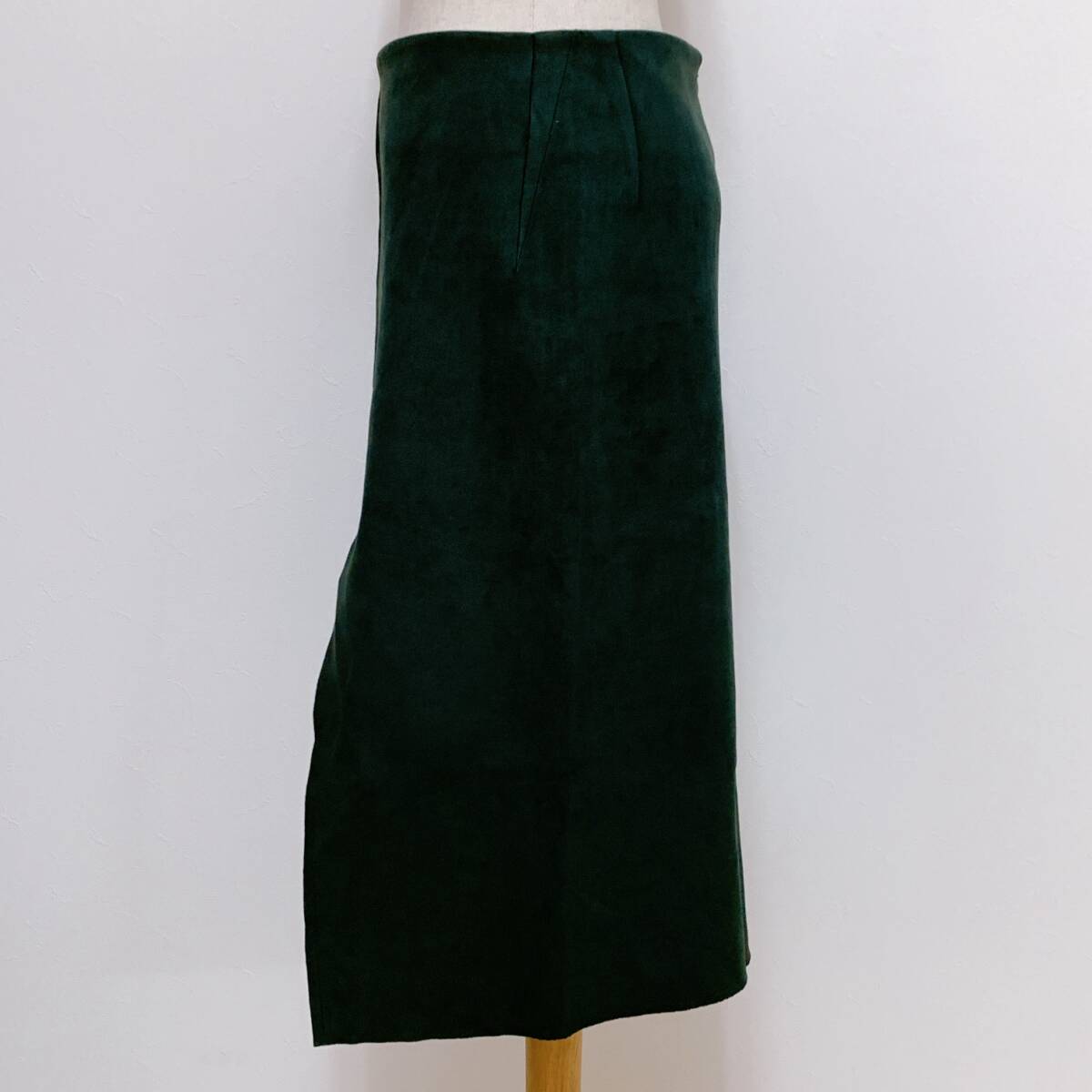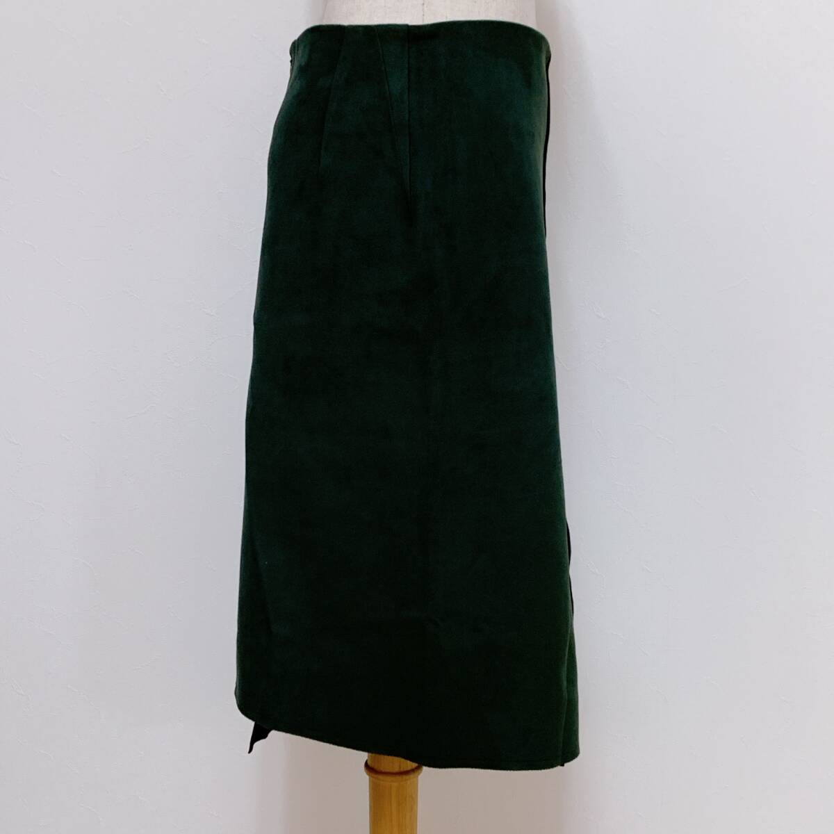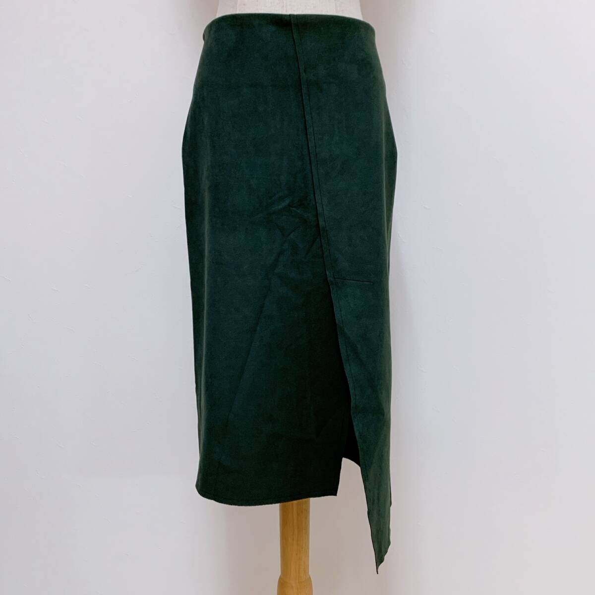 YH1471 aquagarage レディース ひざ下丈 スカート スウェード調 スリット ストレッチ素材 無地 Mサイズ グリーン 緑 万能 USED 古着
