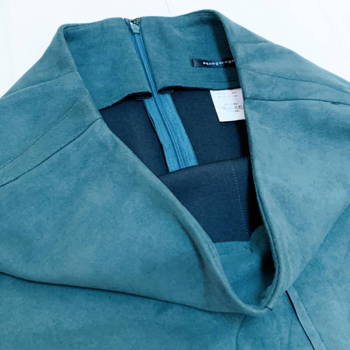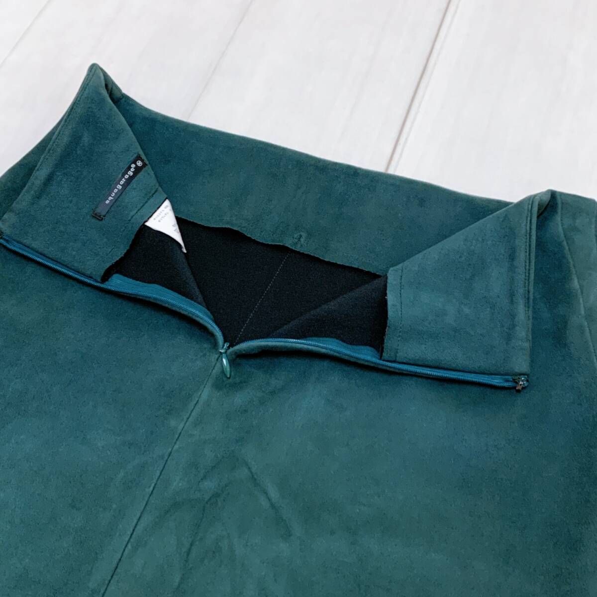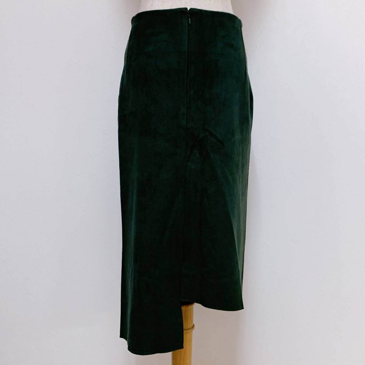 YH1471 aquagarage レディース ひざ下丈 スカート スウェード調 スリット ストレッチ素材 無地 Mサイズ グリーン 緑 万能 USED 古着