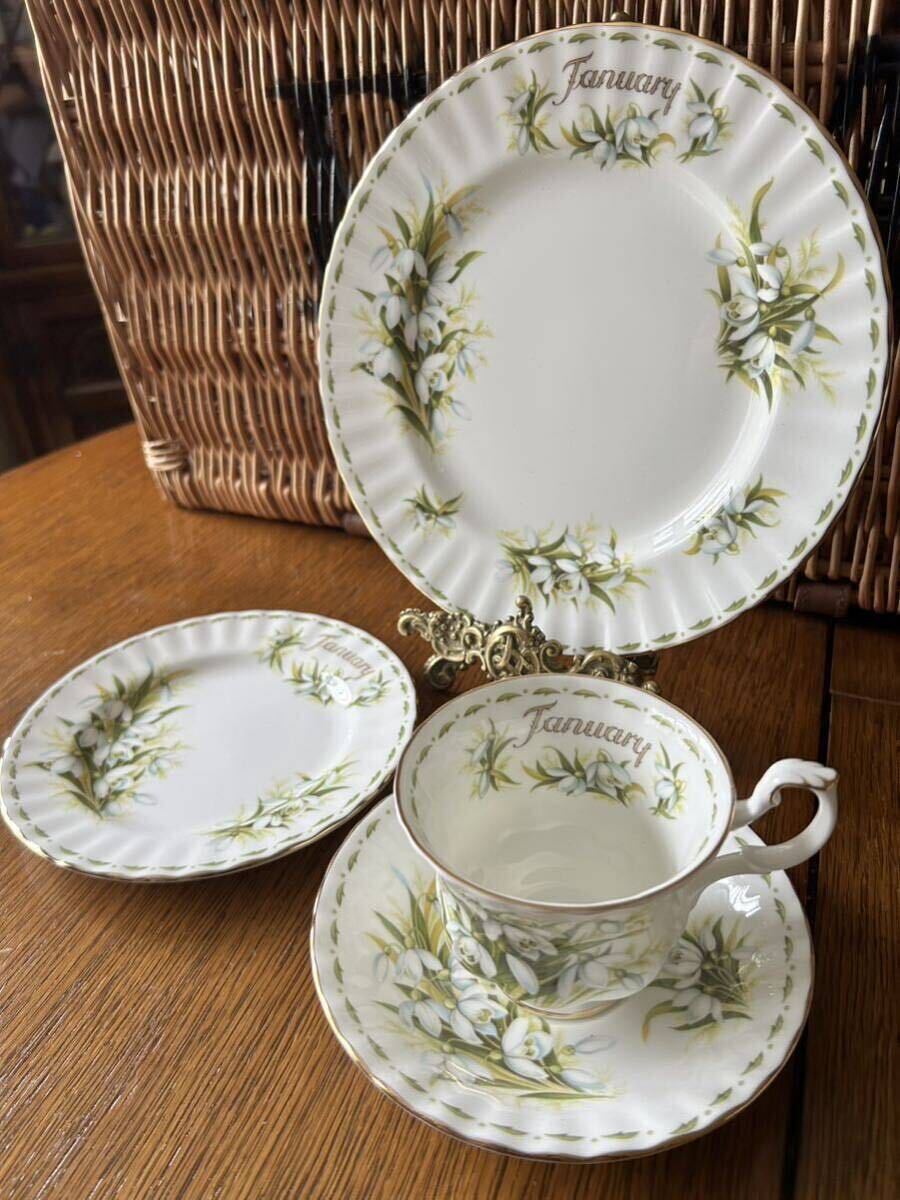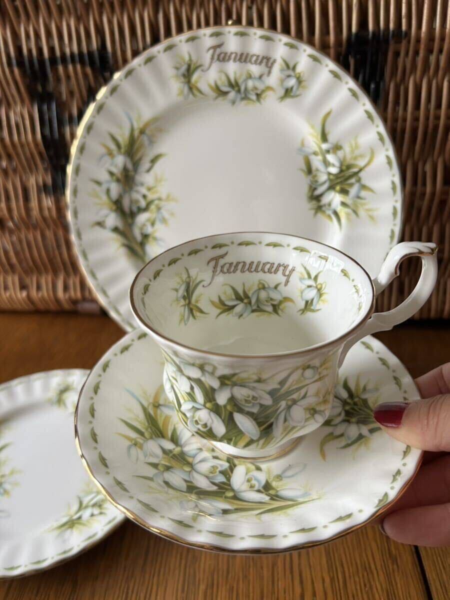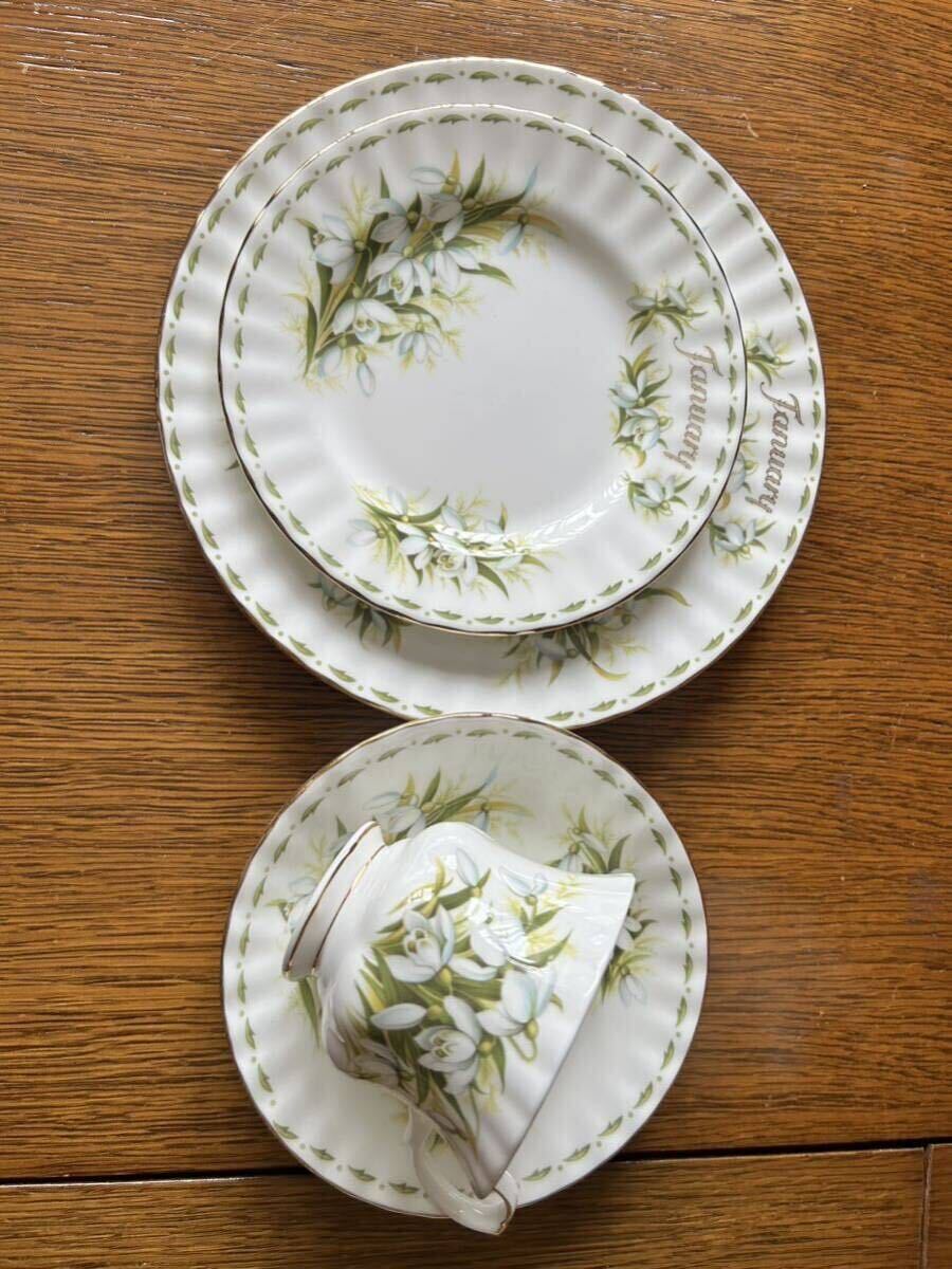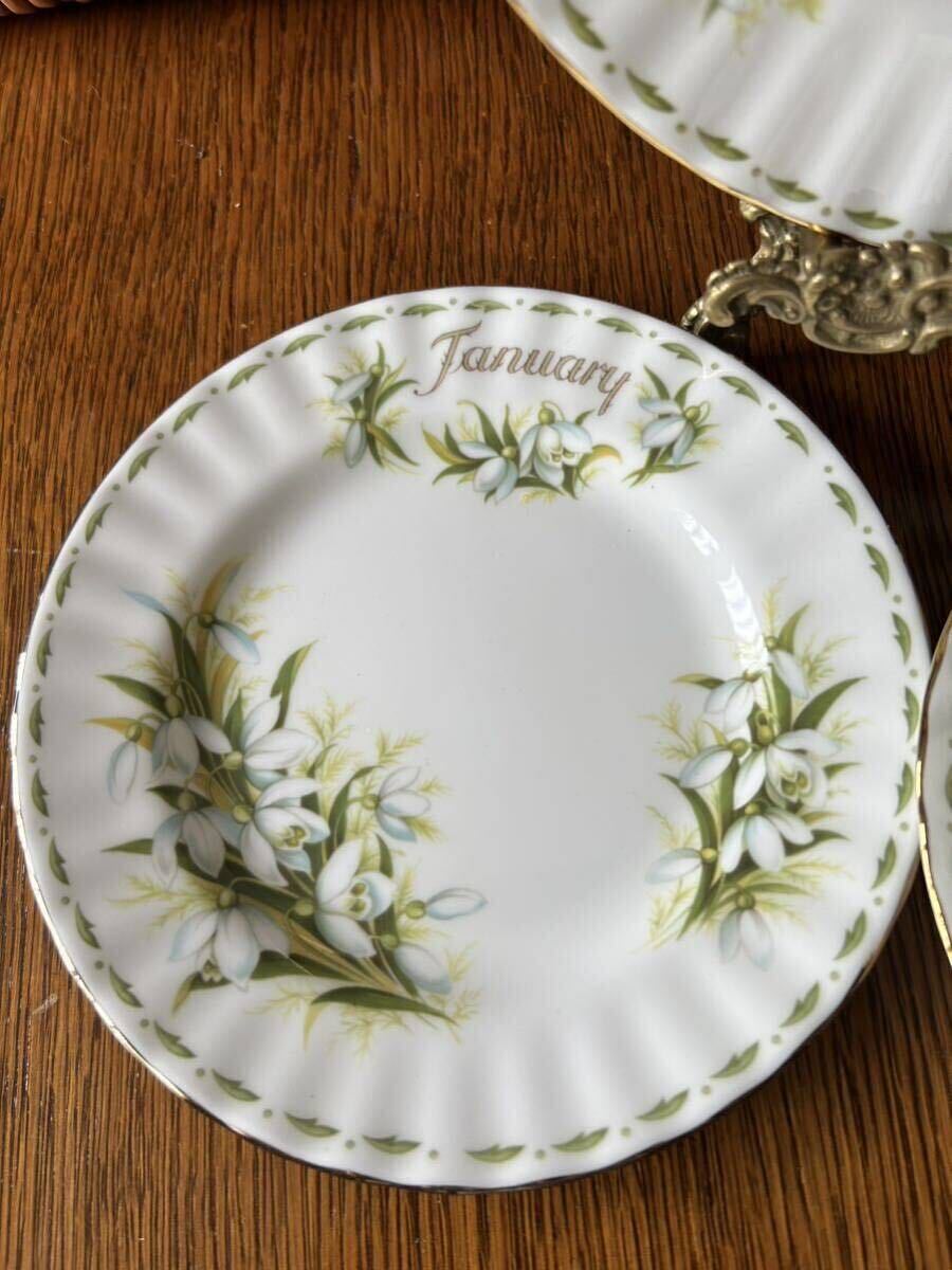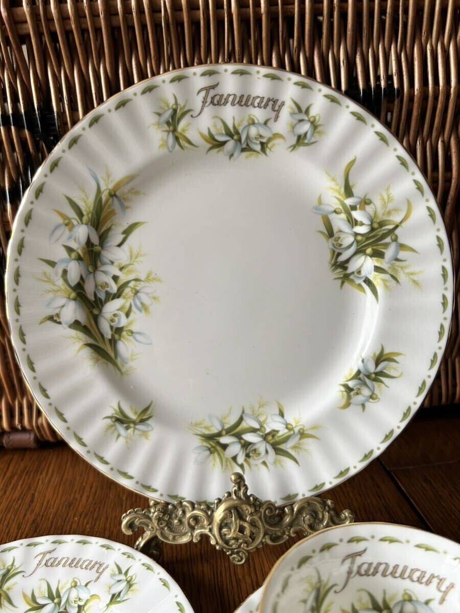 優雅な月ごとの花々を描いた、フラワー・オブ・ザ・マンスシリーズはロイヤルアルバートのコレクターに人気のシリーズです。1970年から2009年までの間に生産された廃盤品で現在では良い状態のものを手に入れることが難しくなっています。アンティークマーケットでも需要の高いアイテムです。