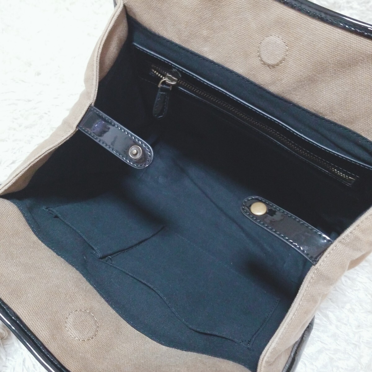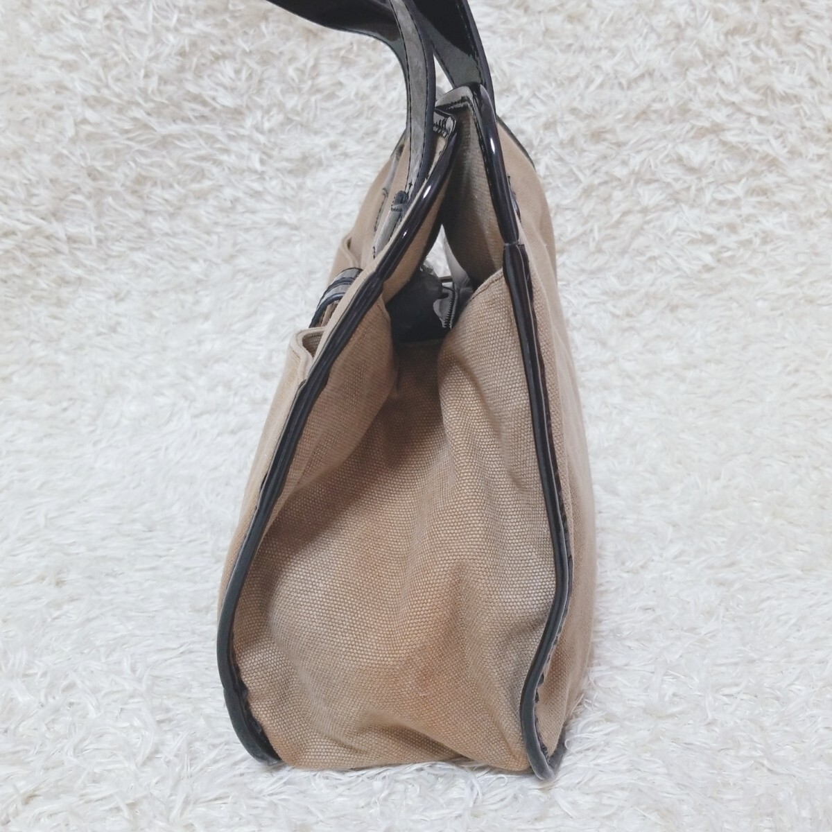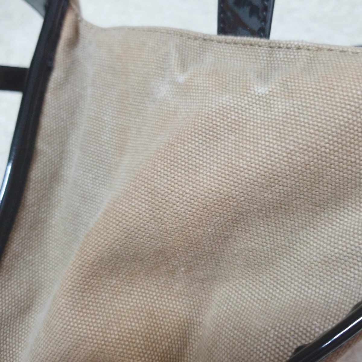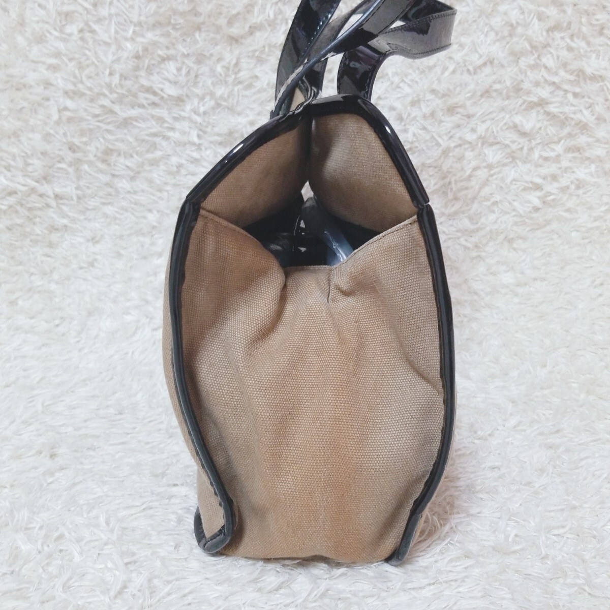 Y1651 ティラマーチ TILA MARCH エナメル キャンバス トートバッグ ハンドバッグ 手提げ カーキベージュ レディース オシャレ