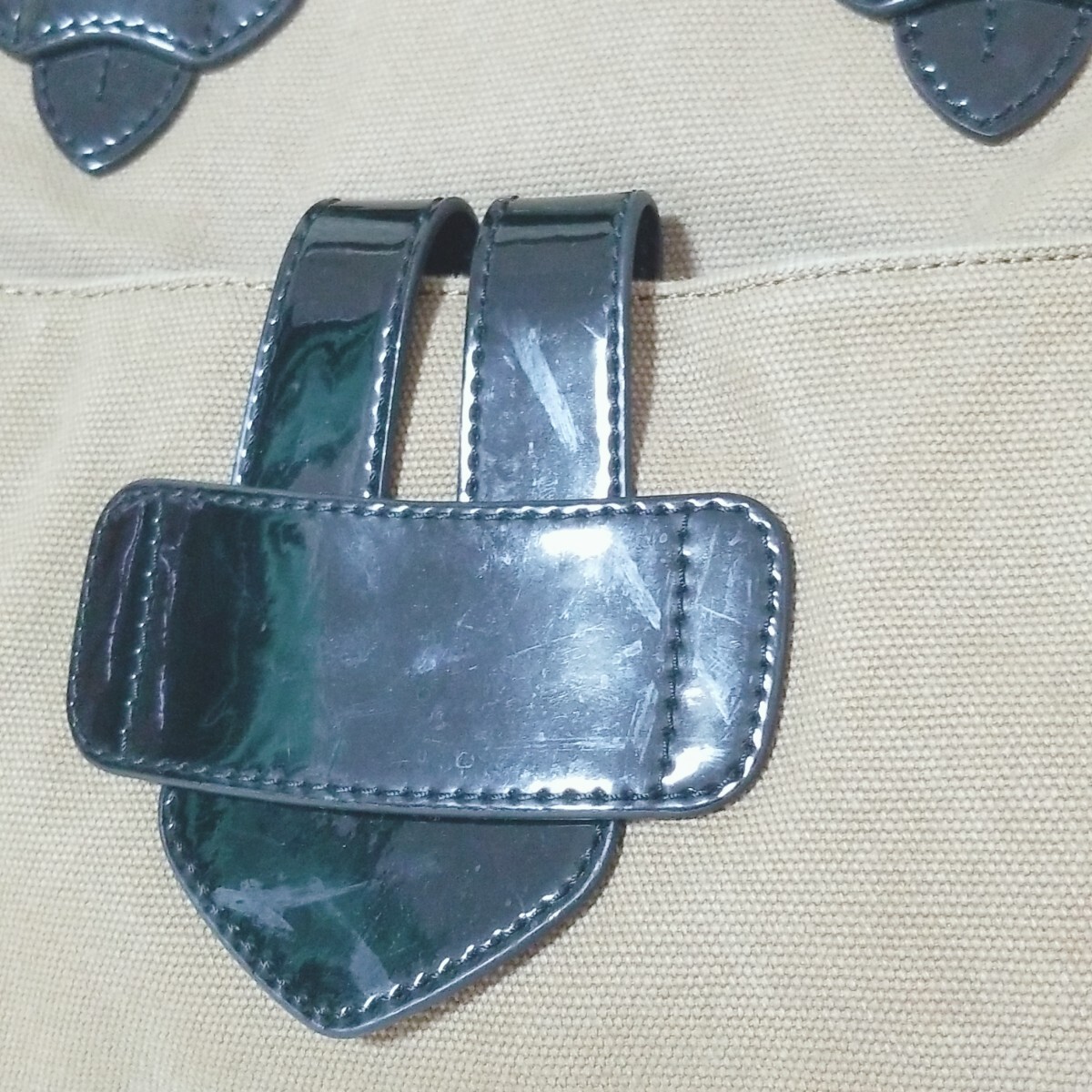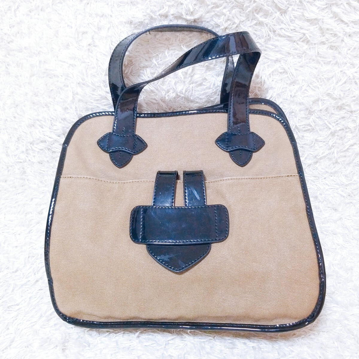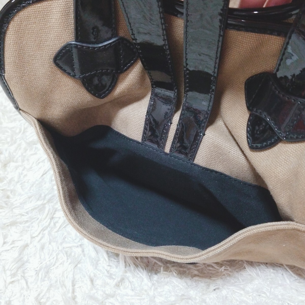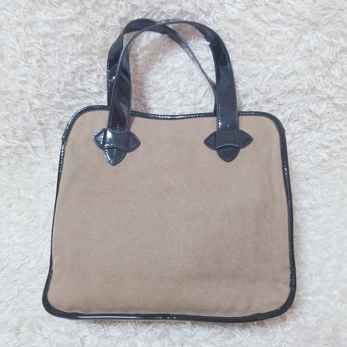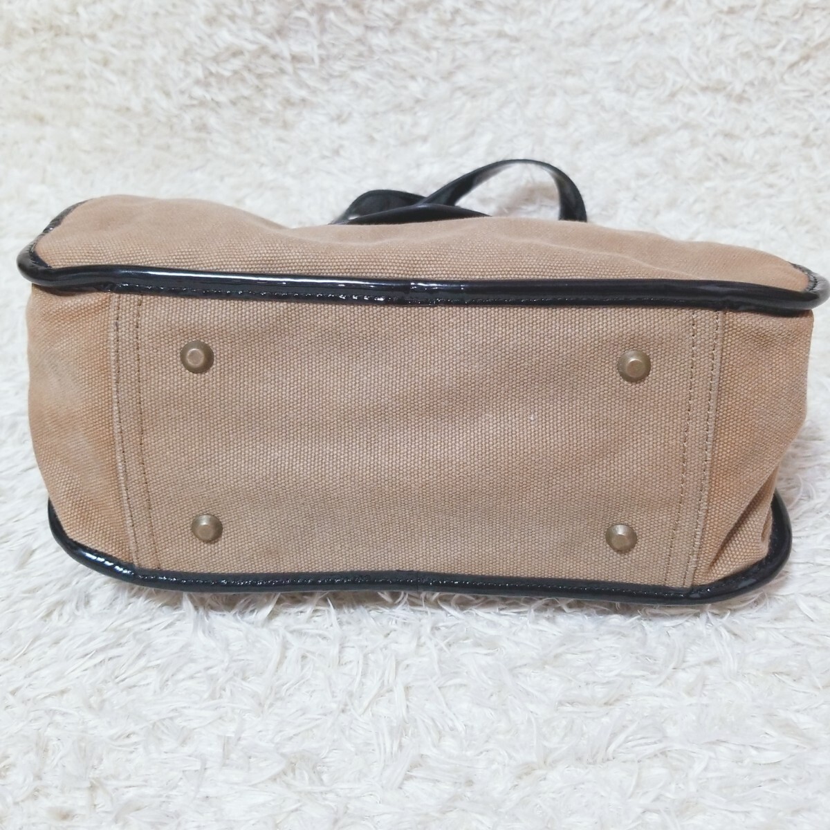 Y1651 ティラマーチ TILA MARCH エナメル キャンバス トートバッグ ハンドバッグ 手提げ カーキベージュ レディース オシャレ