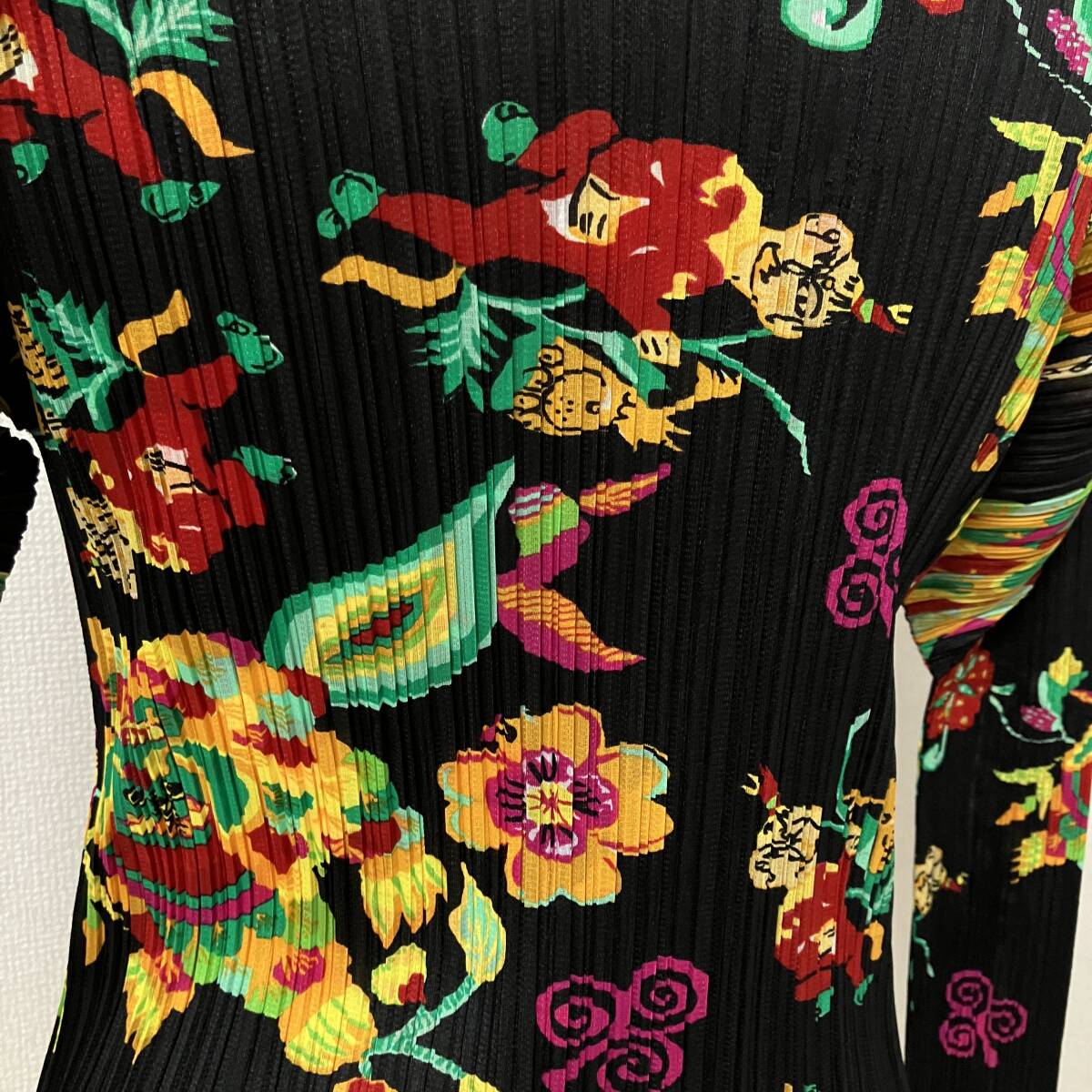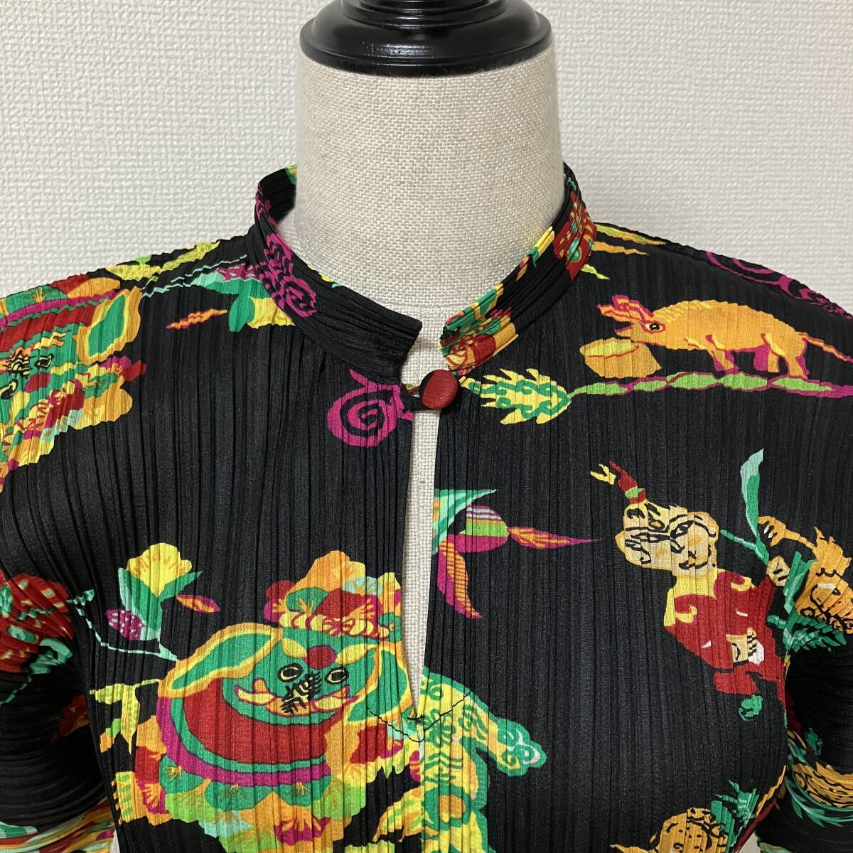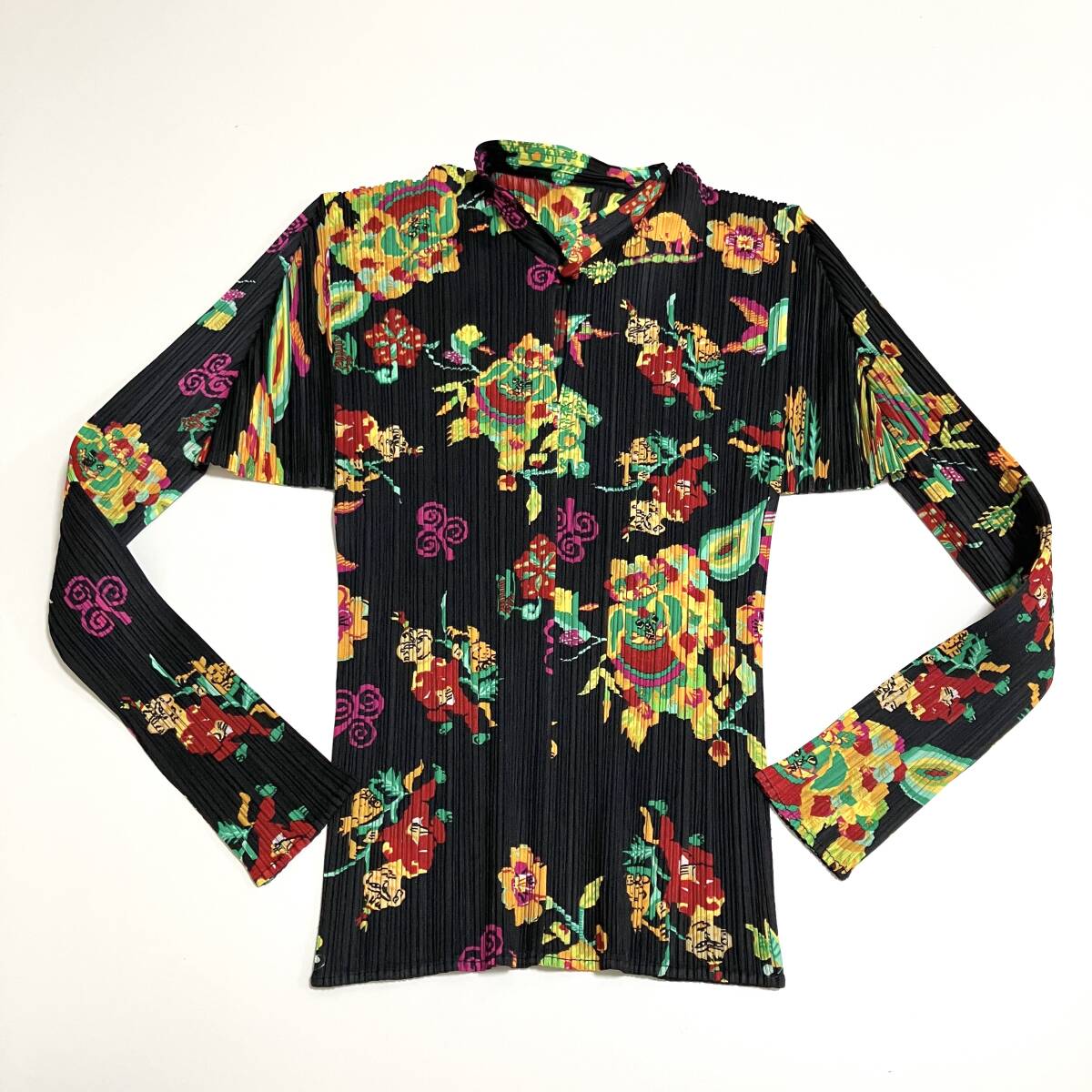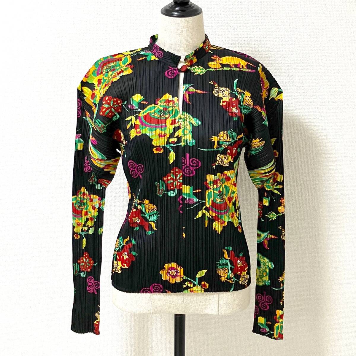 90s ISSEY MIYAKE PLEATS PLEASE 縁起柄 中国獅子 総柄 カットソー ブラウス イッセイミヤケ プリーツプリーズ VINTAGE archive 4080479