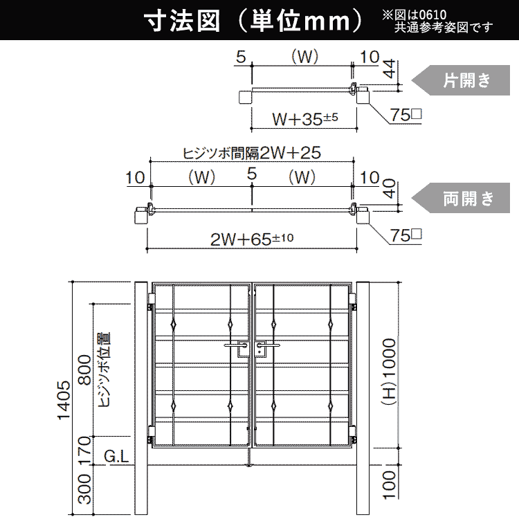 ヒジツボ金具を組み替えれば内開き・外開きどちらにも対応可能です。