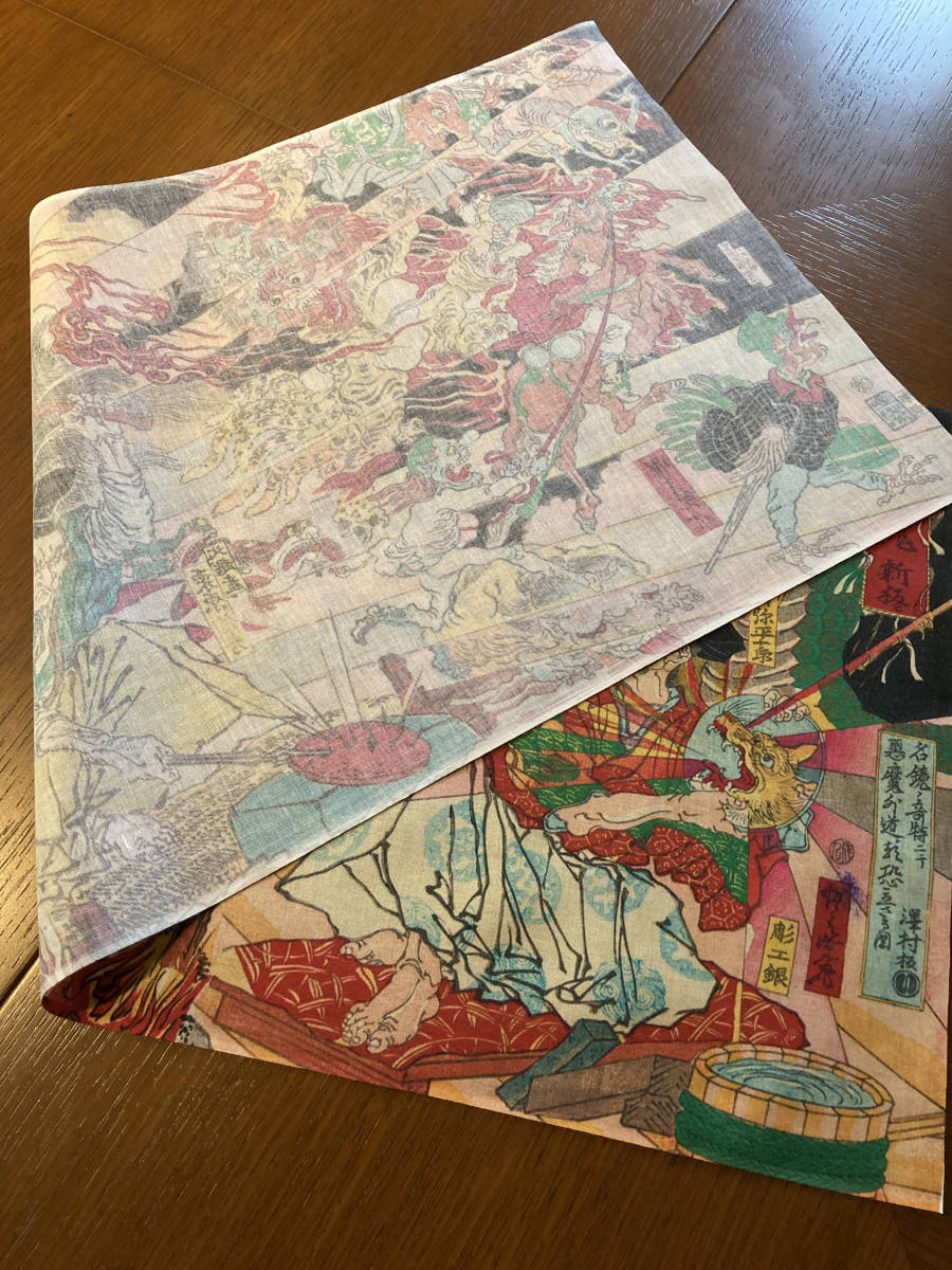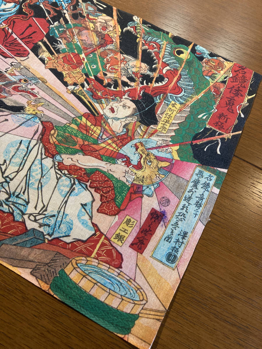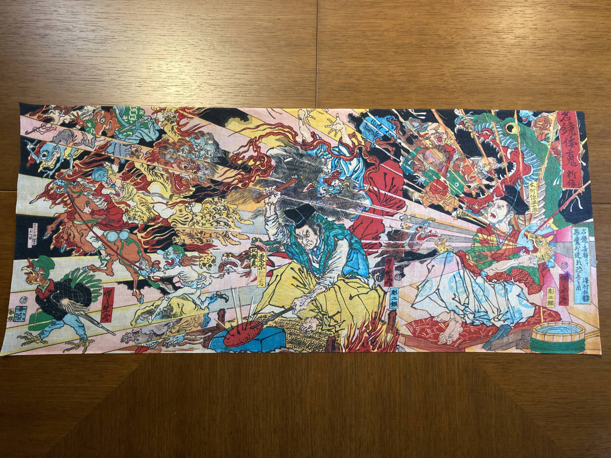 名鏡倭魂 新板 その2 河鍋暁斎 手ぬぐい 浮世絵 サイズは約79cm 35cm