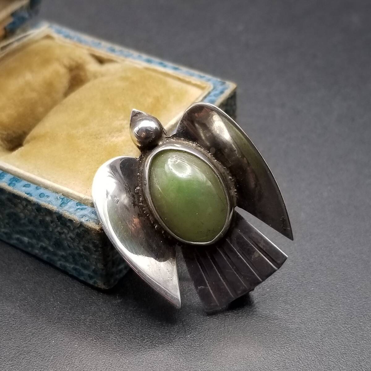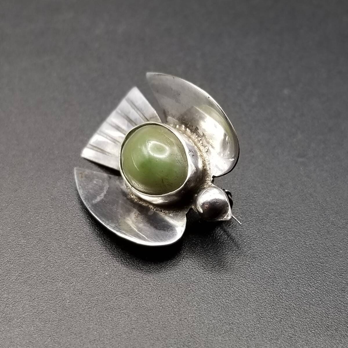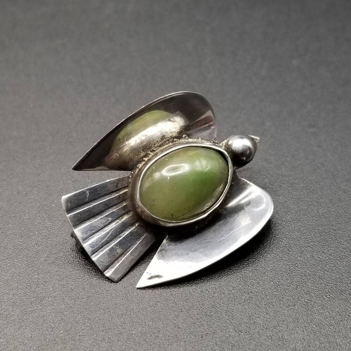1940s AMメキシコ 鳥 モチーフ モスグリーン オーバル アニマル ヴィンテージ シルバー ブローチ ジュエリー 輸入 R13-G