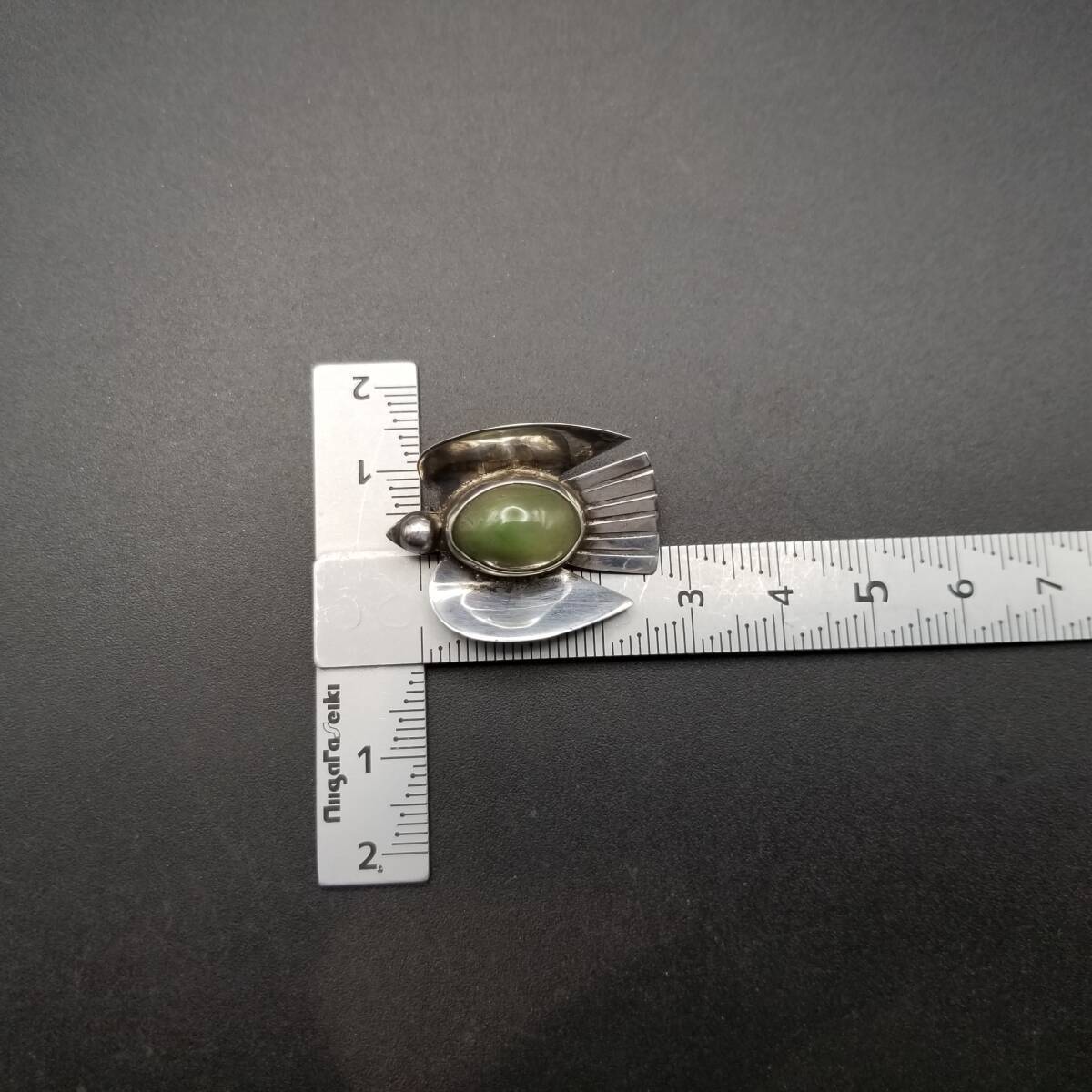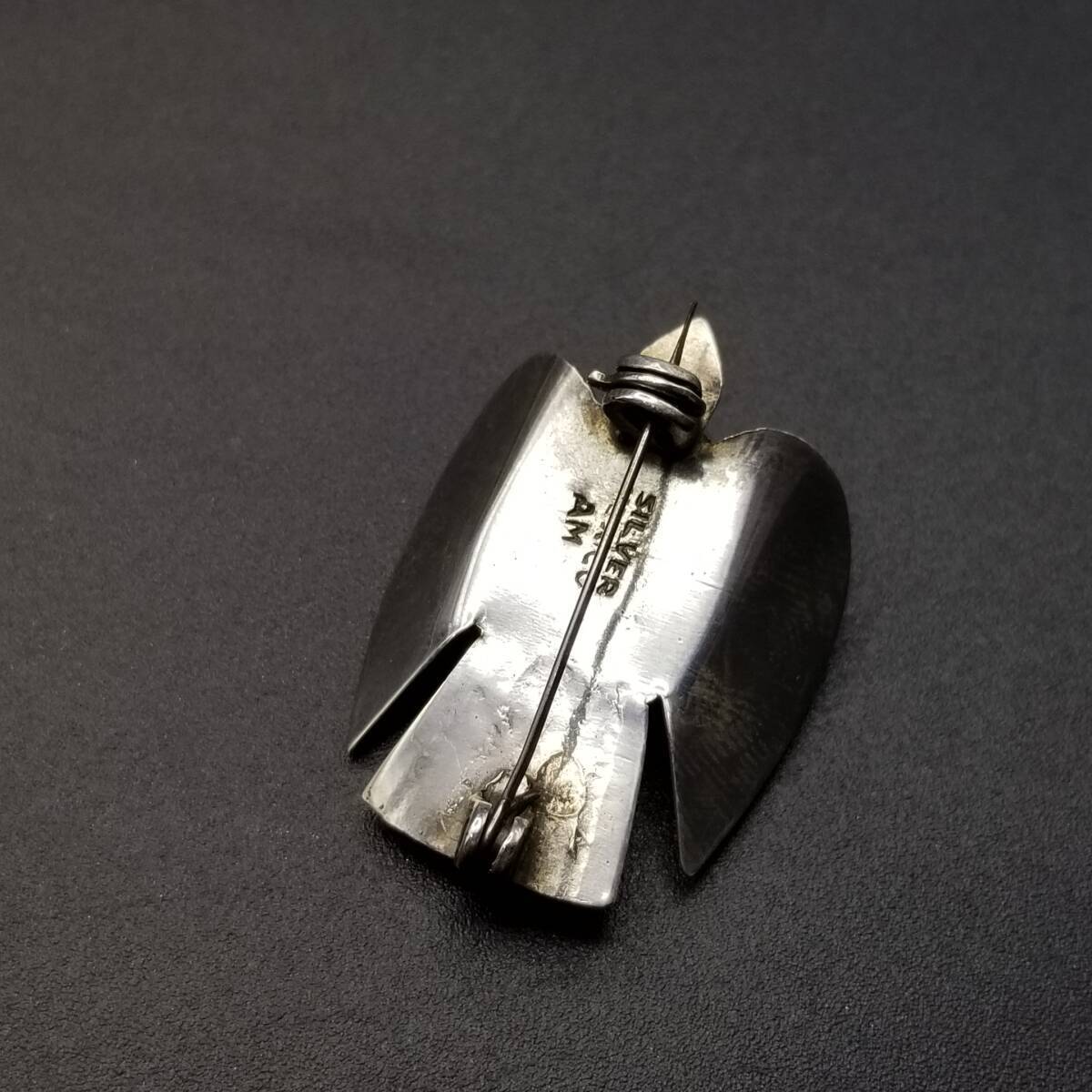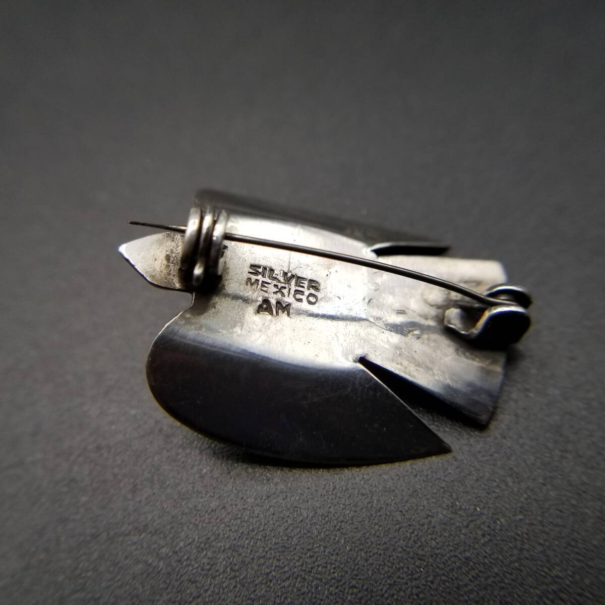 1940s AMメキシコ 鳥 モチーフ モスグリーン オーバル アニマル ヴィンテージ シルバー ブローチ ジュエリー 輸入 R13-G