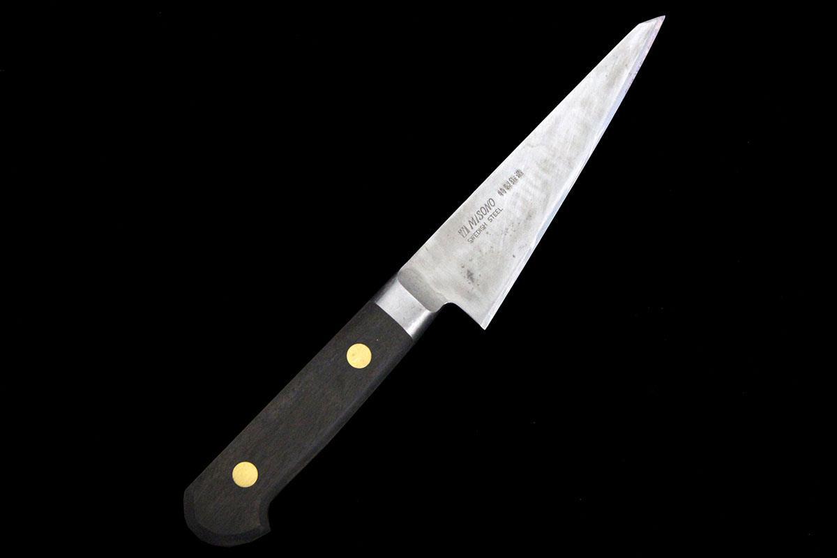 美品|ミソノ 骨スキ包丁 145mm スウェーデン鋼 鍔付き柄 KN02-A9204-2L1B