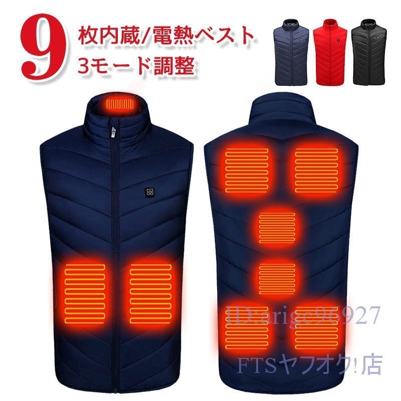 X002☆9つヒーターベスト電熱 電熱ジャケットUSB充電 ホットベスト 3段階の温度制御 通勤通学 保温 防寒 男女兼用 4XL