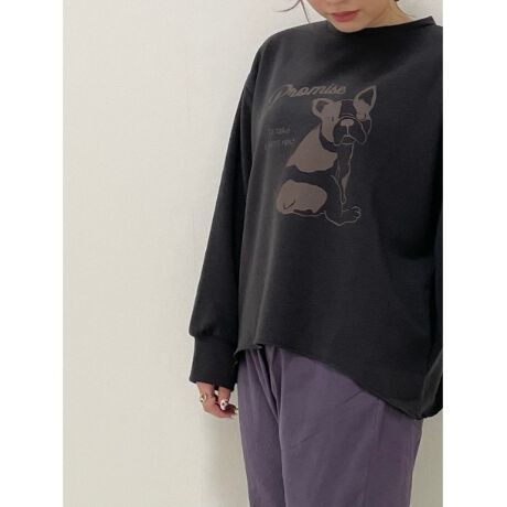 フロントにアニマルイラストをあしらったミニ裏毛プルオーバー。