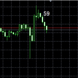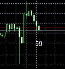 MT4のチャートローソク足の上か下にその時の秒数が表示されます。
