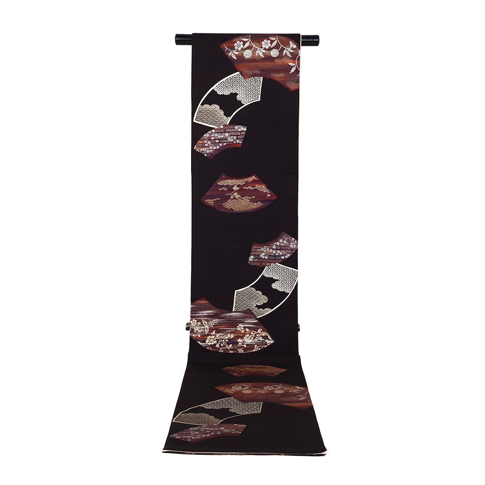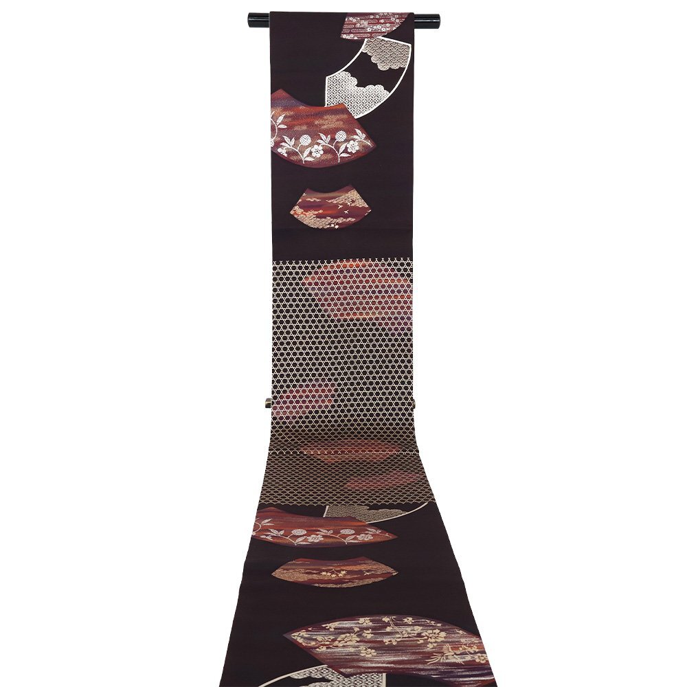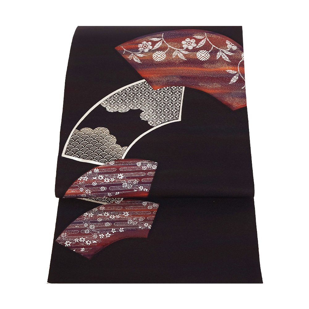 | 出蔵善之助 一期一会 西陣織袋帯 黒・金箔・銀箔地 地紙文 笹蔓・花菱亀甲・青海波・花喰鳥 仕立て上がり |
