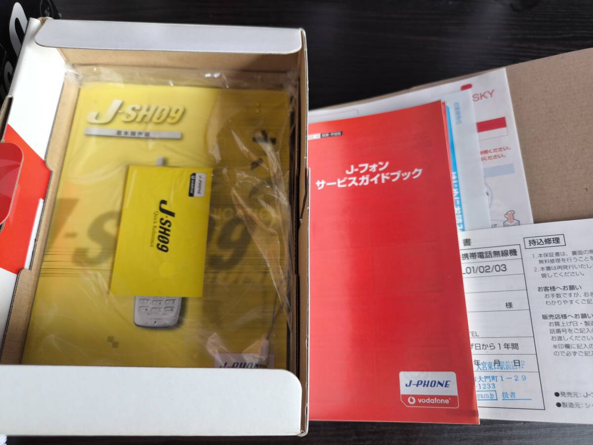 携帯電話 シャープ J-SH09 懐かしいガラケー J-PHONE vodafone 希少 未使用品 フルセット アンティーク インテリア コレクションなどに
