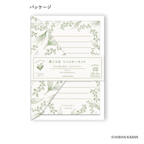 ○手軽でかわいいミニサイズの便箋と、内面に花柄が印刷された封筒のセット。
