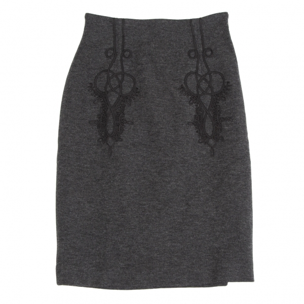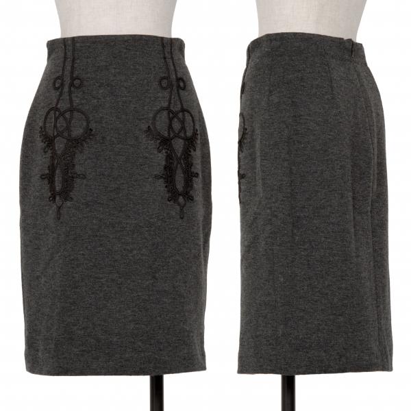 ジャンポールゴルチエ ファムJean Paul GAULTIER FEMME エンブロイダリーアクリルウールニットスカート チャコール40 |
