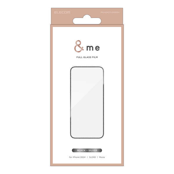 | 製品 | iPhone16 Pro用画面保護ガラスフィルム[&Me] ラインストーン風フレームデザインタイプ |