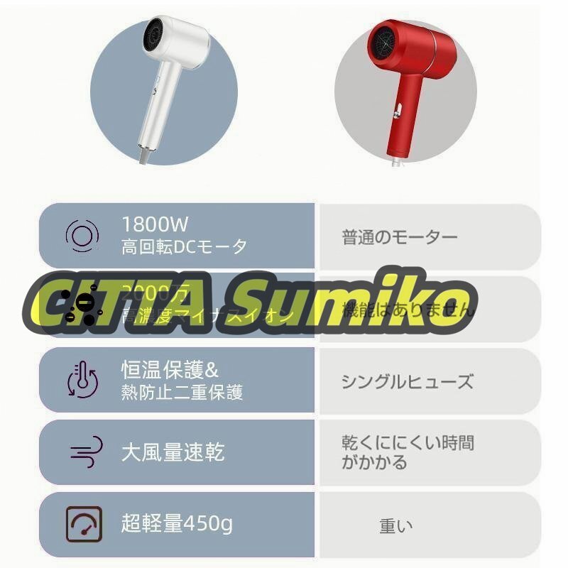 ドライヤー 速乾 大風量 冷熱風 4段階調節可能 おすすめ ヘアドライヤー マイナスイオン 温度調整 超軽量 高級 美髪 静音 2023 過熱保護