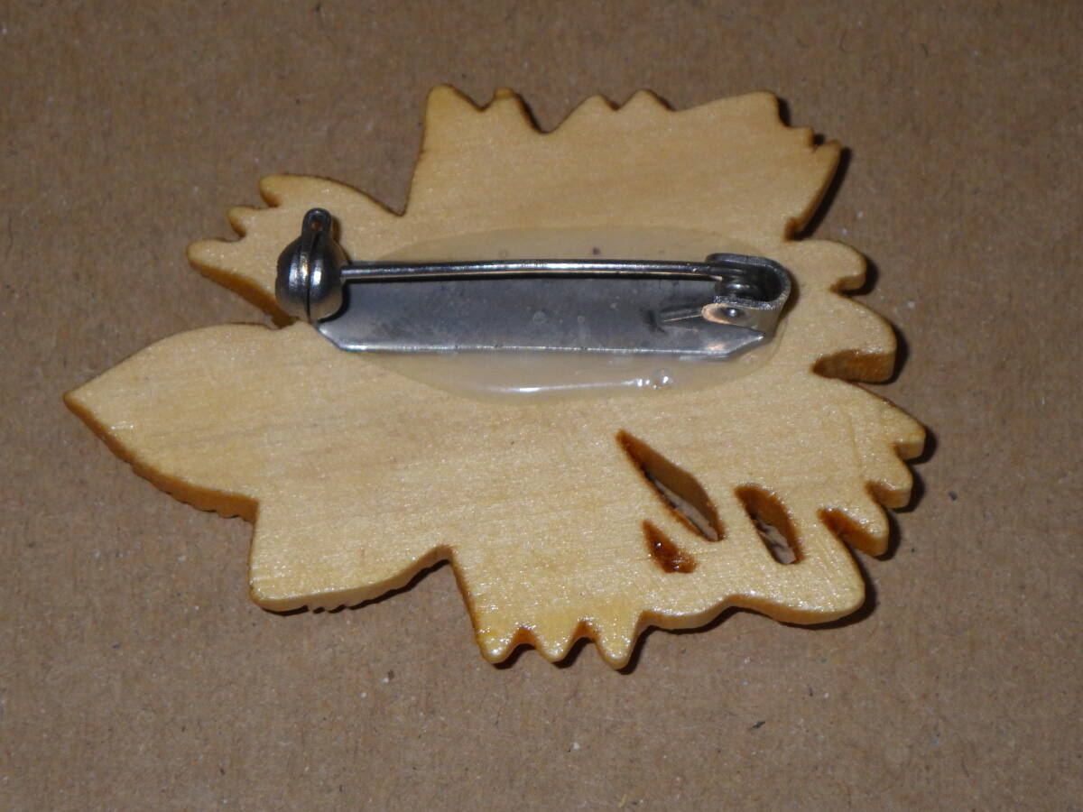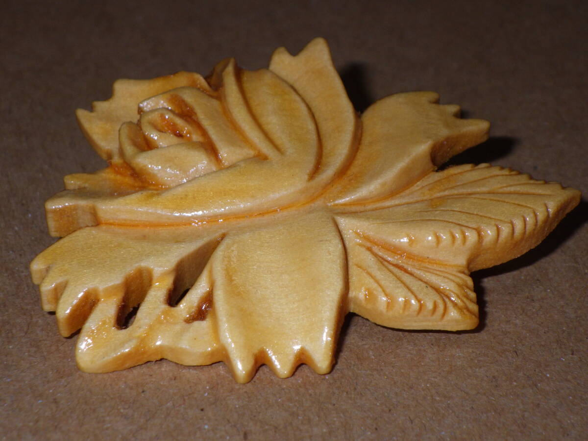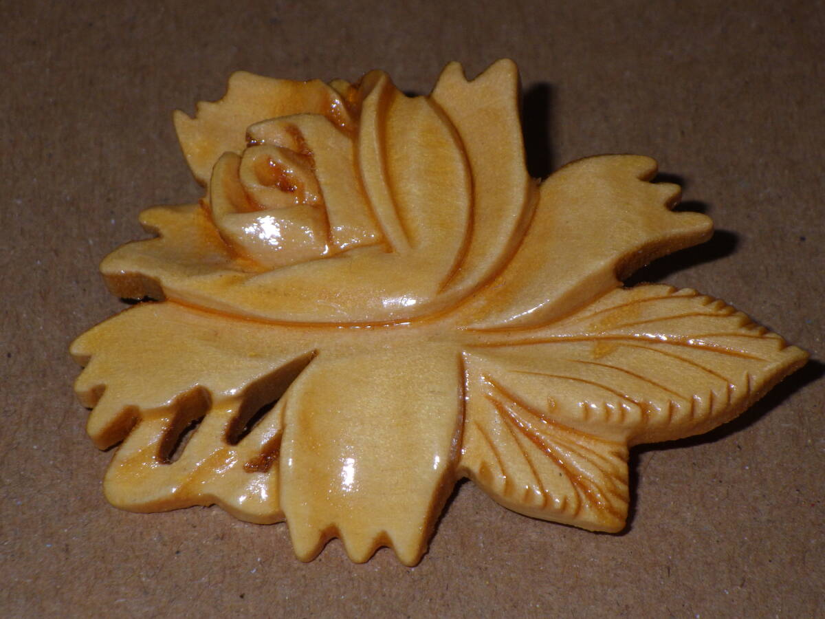未使用 木彫り 木つげ ばら バラ 薔薇 ブローチ バッチ 愛の使者