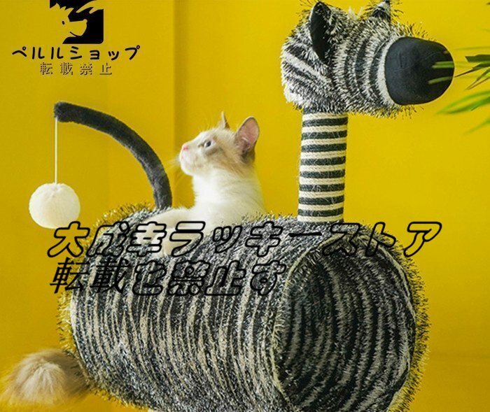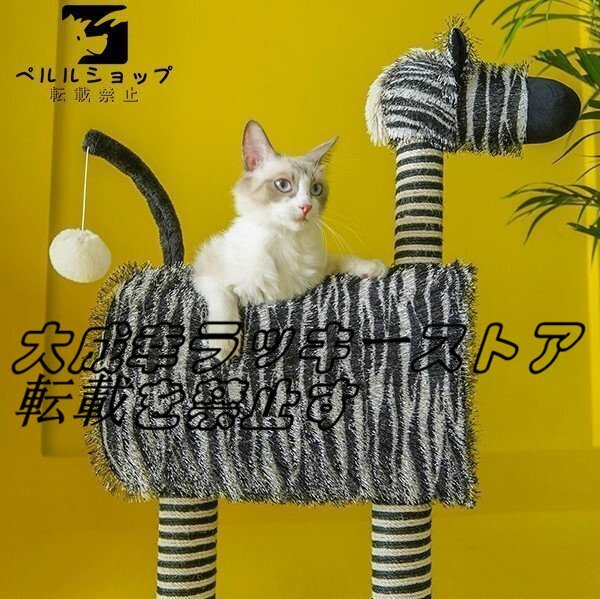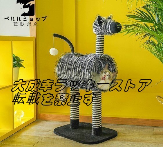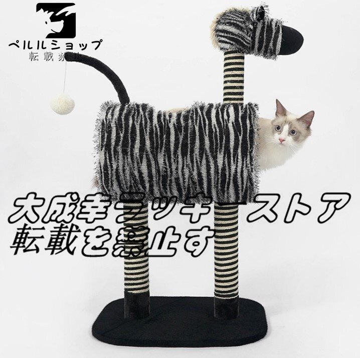 猫用木製 可愛いサイザル キャットタワー キャットツリー キャットランド 据え置き 木登りタワー シマウマ型