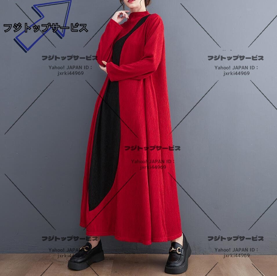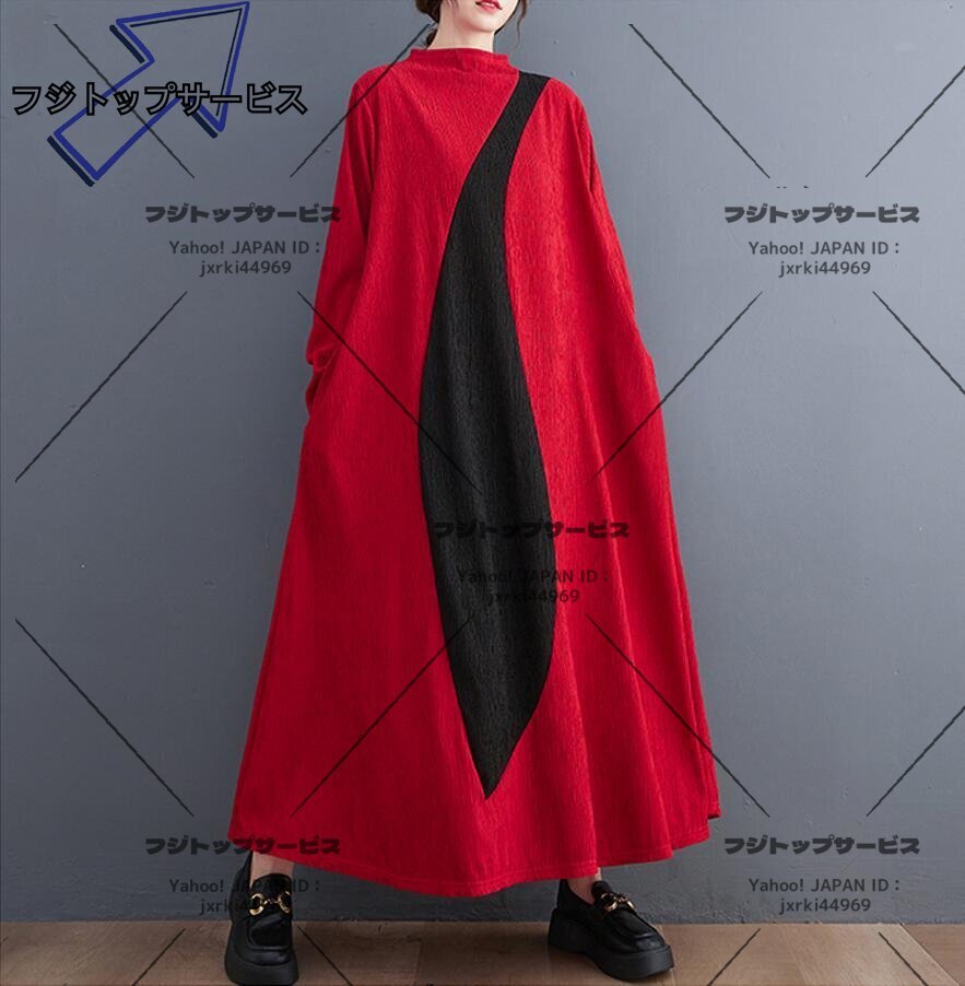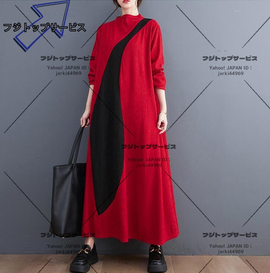秋新品 カジュアルワンピース レディース Aライン 大きいサイズ 長袖 切り替え ロングワンピース 2色から選択可能
