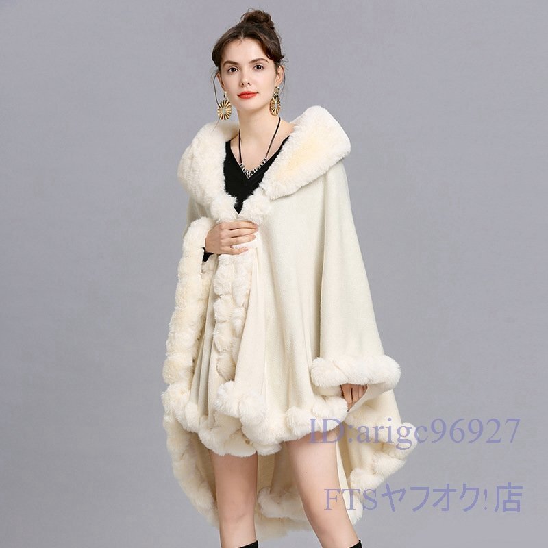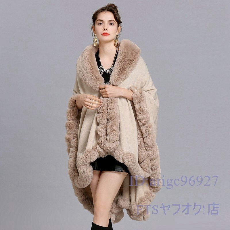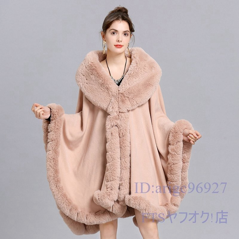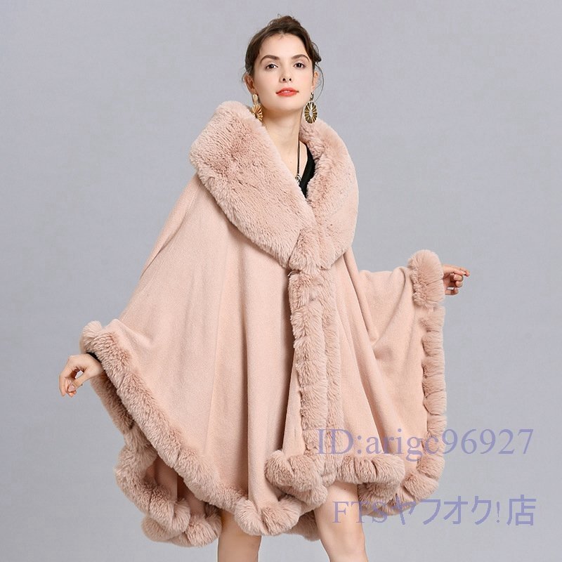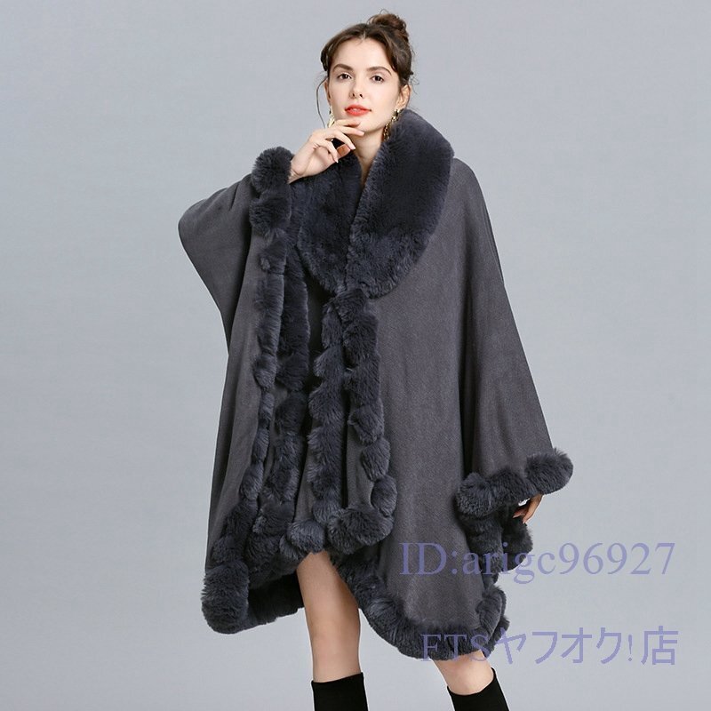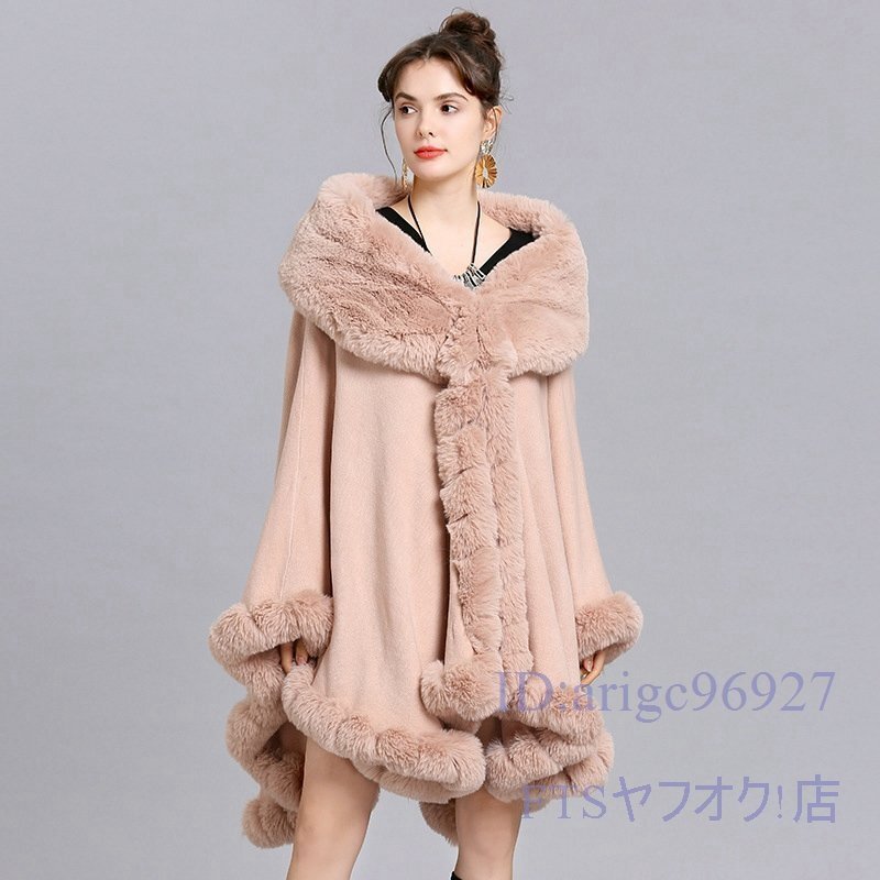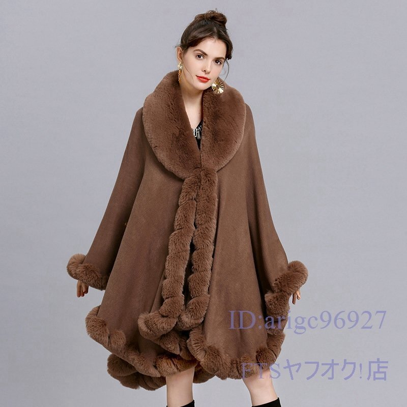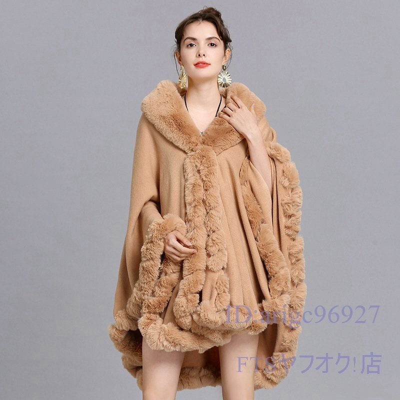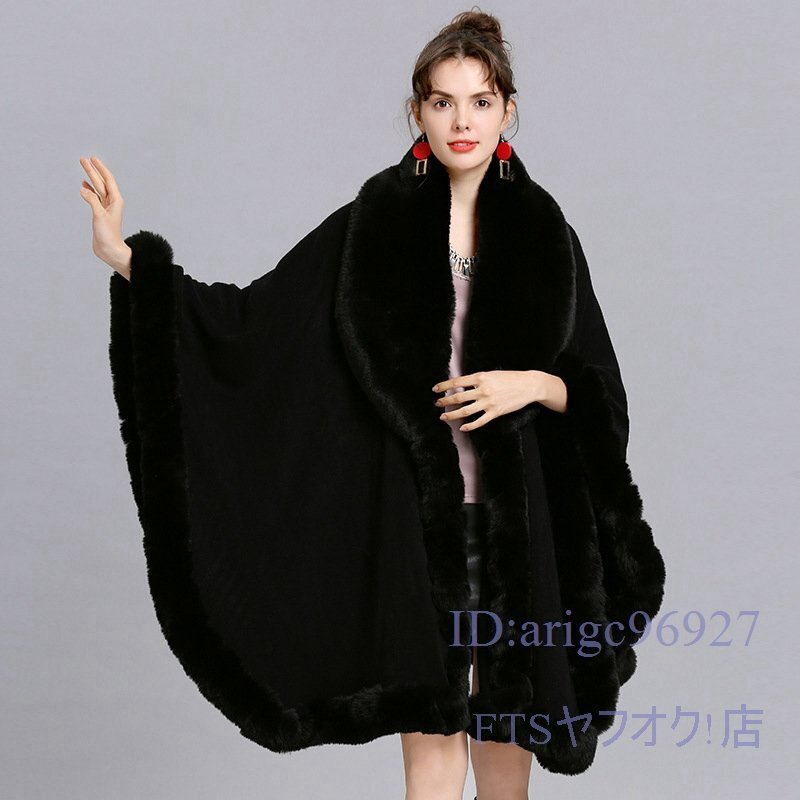 A1194☆新品ポンチョコート レディースマントコート フェイクファーケープコート アウター フェイクカシミヤニットカーディガン ふわふわ