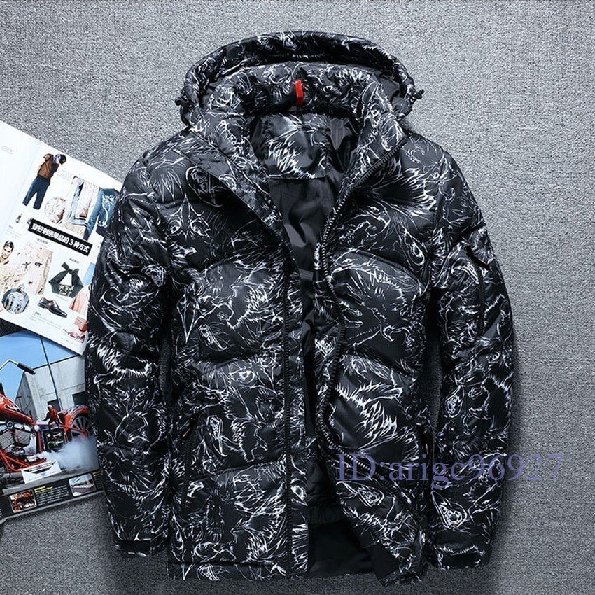 X240☆新品ダウンジャケットダウンコート 総柄 ウィンドブレーカー ホワイトダックダウン ジャンパー 防風防寒着 アウター 羽毛 ブラック