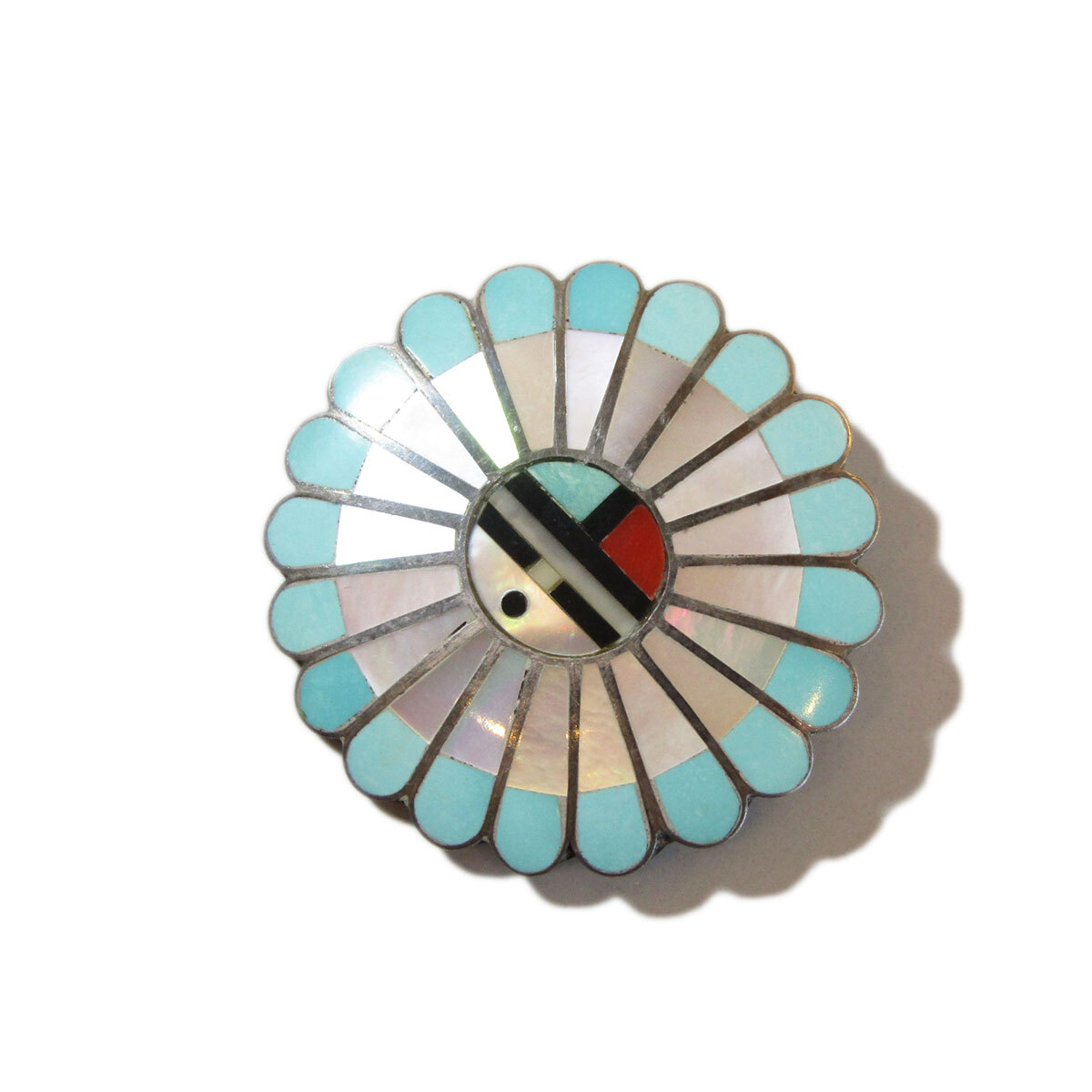 ★Vintage Indian jewelry Zuni silver 925 sun face pendant pin